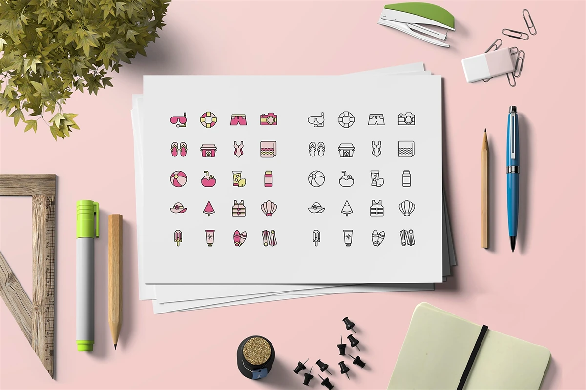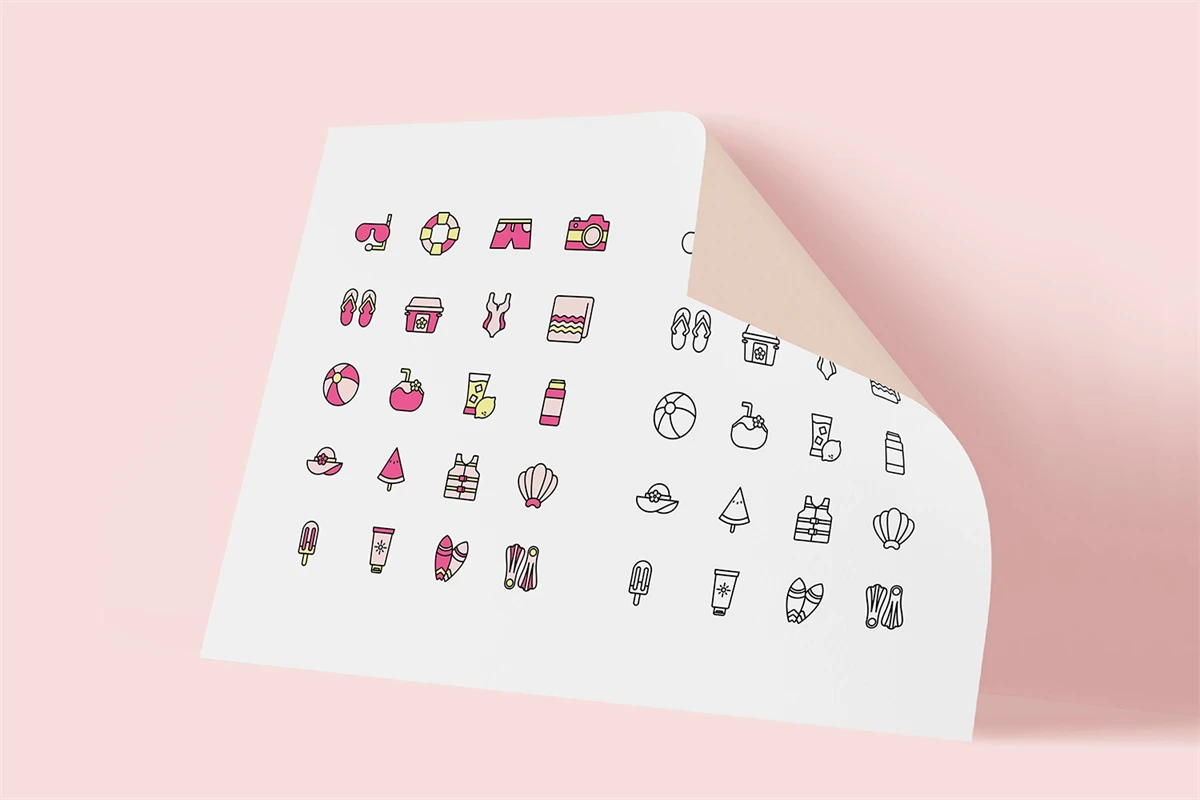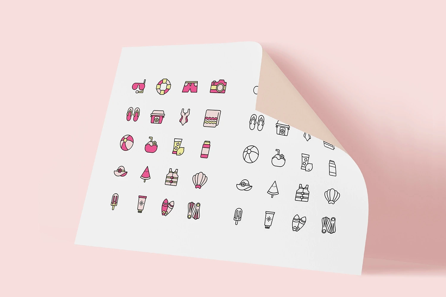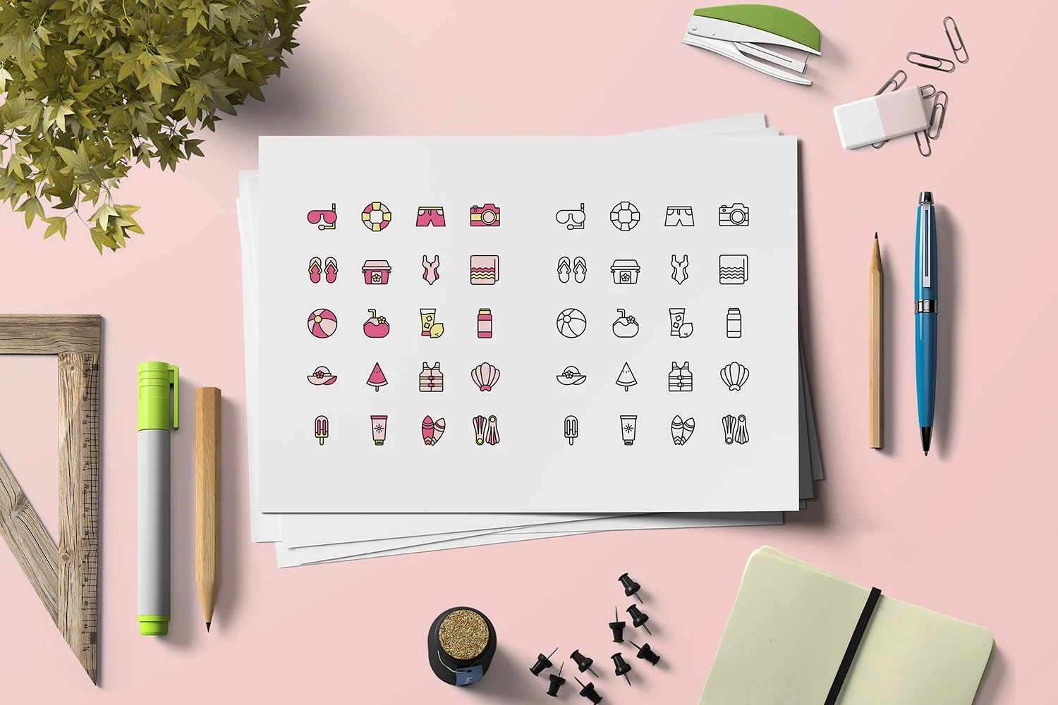 Don't miss it Beach - Icons This professional Icons pack, high quality, for professional designers, easy to use, fully editable & customizable in Adobe Illustrator