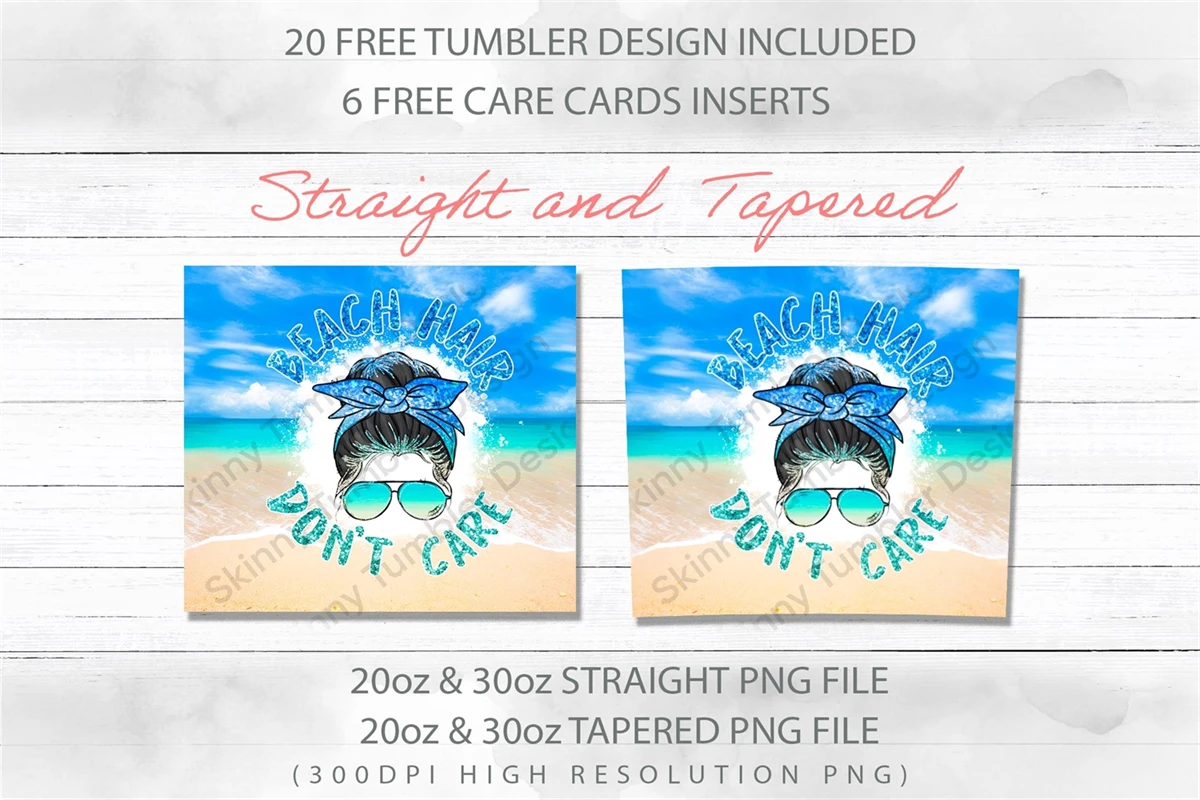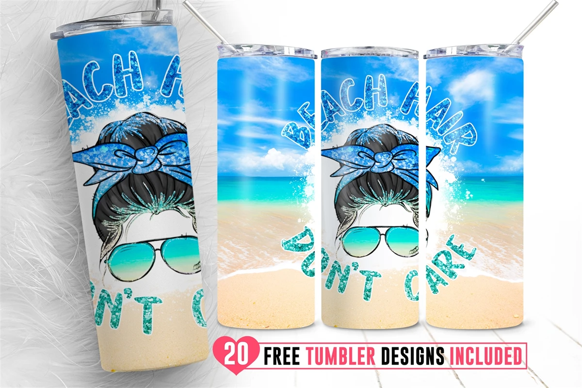 Beach Hair Dont Care Skinny Tumbler Summer Sunset Holiday