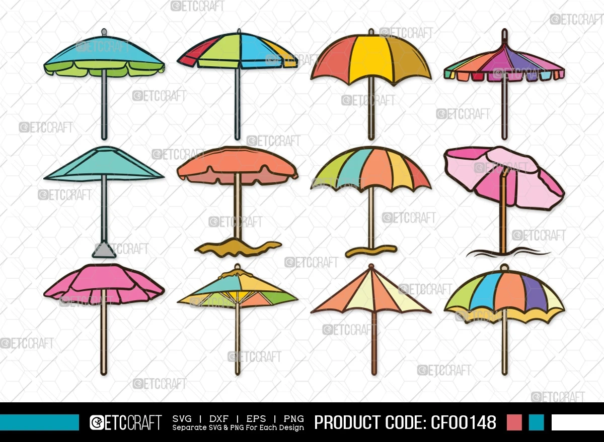Bring the vibrant hues and cool shade of a beach day to your projects with our Beach Umbrella Clipart Summer Vacation SVG Cut File Bundle. This collection features delightful clipart designs of beach umbrellas, perfect for infusing the essence of summer and vacation into your creative endeavors. Compatible with a variety of design software and cutting machines, this SVG bundle invites you to bask in the sun and surf right in your crafts.