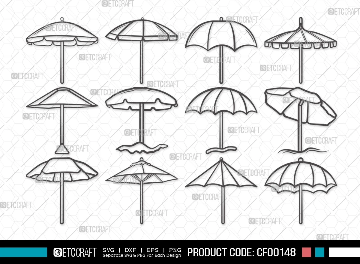 Step into the vibrant world of summer with our Beach Umbrella Outline Summer Vacation SVG Cut File Bundle. This collection features captivating outline clipart designs of beach umbrellas, perfect for adding a touch of sunny delight to your creative projects. Compatible with a variety of design software and cutting machines, this SVG bundle is your gateway to embracing the carefree beach life in your crafts.
