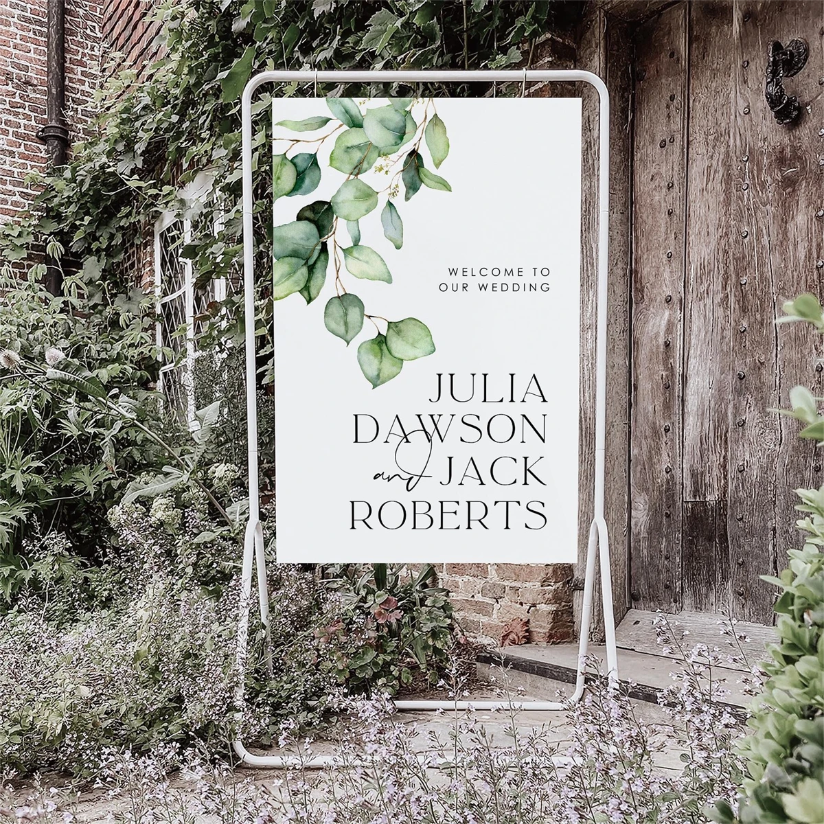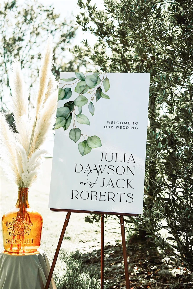 BEACHMERE Greenery Wedding Welcome Sign Template,Canva