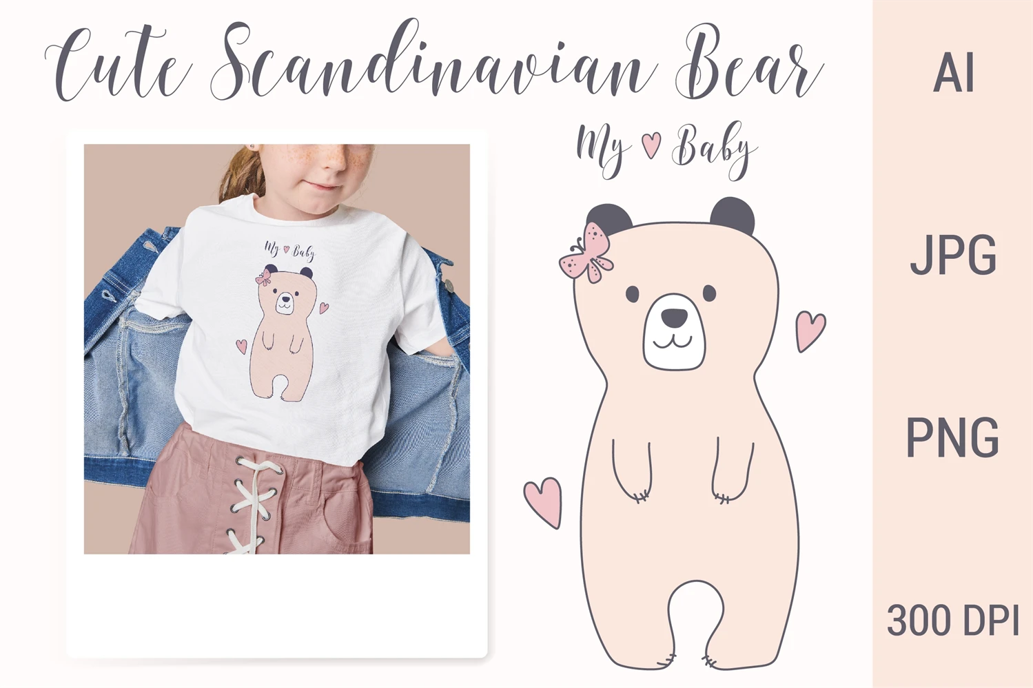 Bear PNG sublimation.Scandinavian Bear.Cute Scandinavian Bear Sublimation.Cute little Scandinavian bear.Cute vector bear in scandinavian style.Vector illustration.