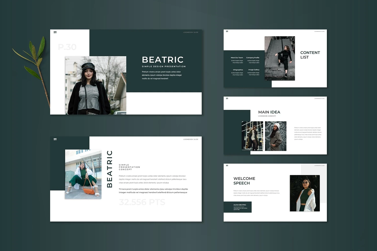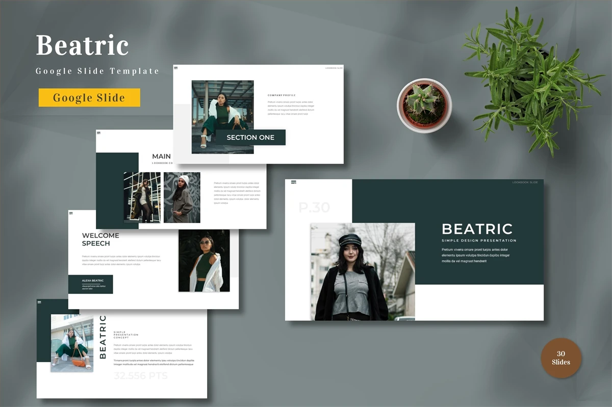 Get it now! **Beatric - Google Slide Template** for All Business and Personal Needs All elements on this template are editable; input your content, replace your image with a placeholder, change the color, and all presentations include an animated slide to present your slides.