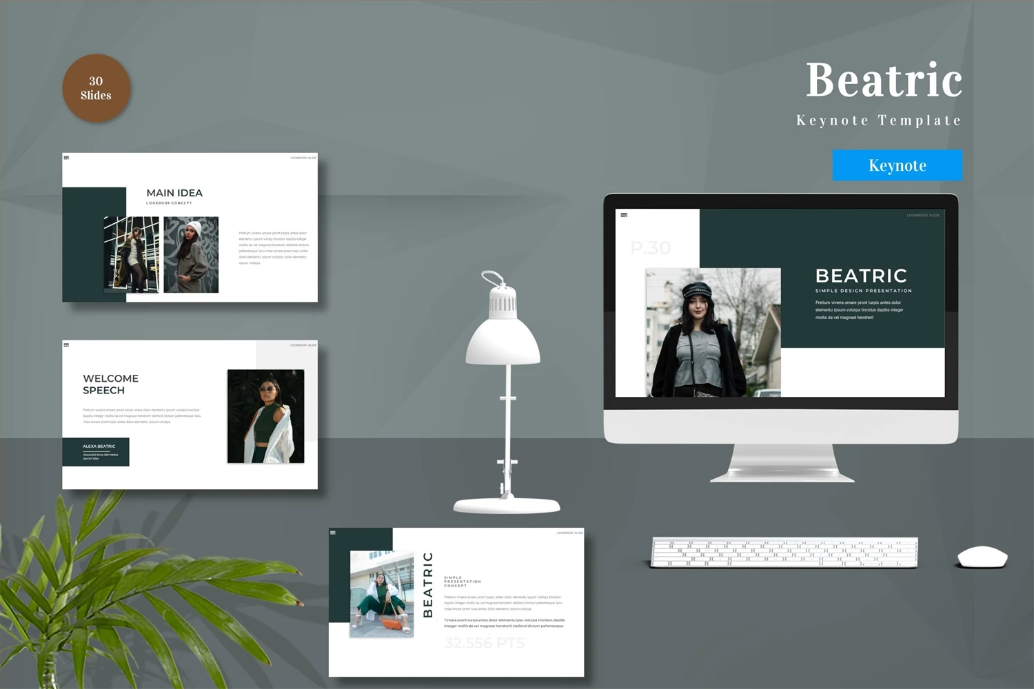 Get it now! **Beatric - Keynote Template** for All Business and Personal Needs All elements on this template are editable; input your content, replace your image with a placeholder, change the color, and all presentations include an animated slide to present your slides.