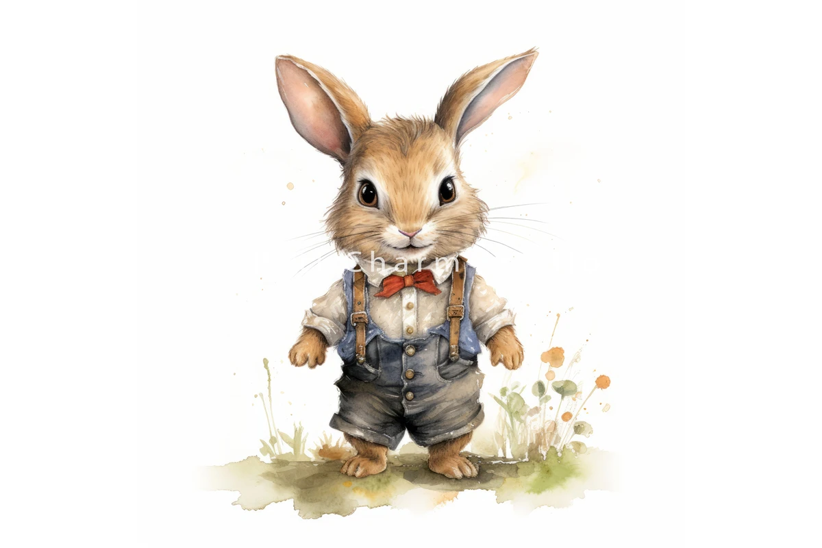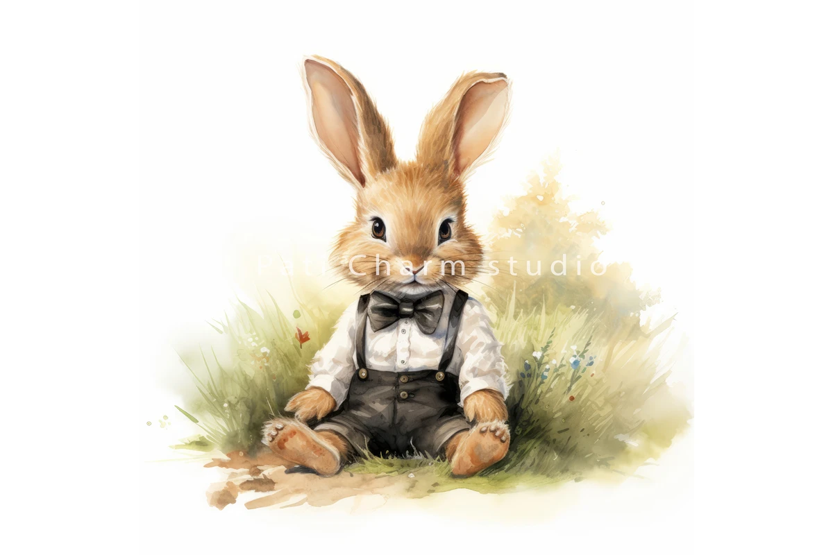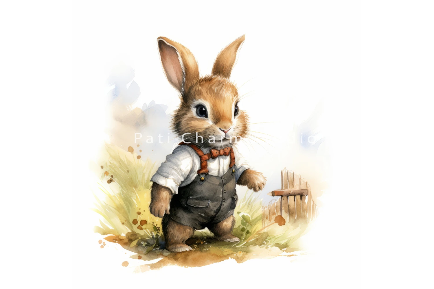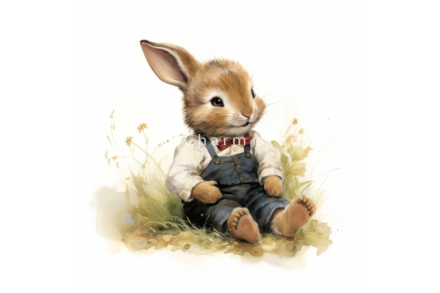 Explore the world of inteligent animals with this wonderful clipart set illustration inspired illustrations by Beatrix Potter. This pack contains 9 high quality JPG images featuring adorable illustrations of baby and adult vintage bunny animals.