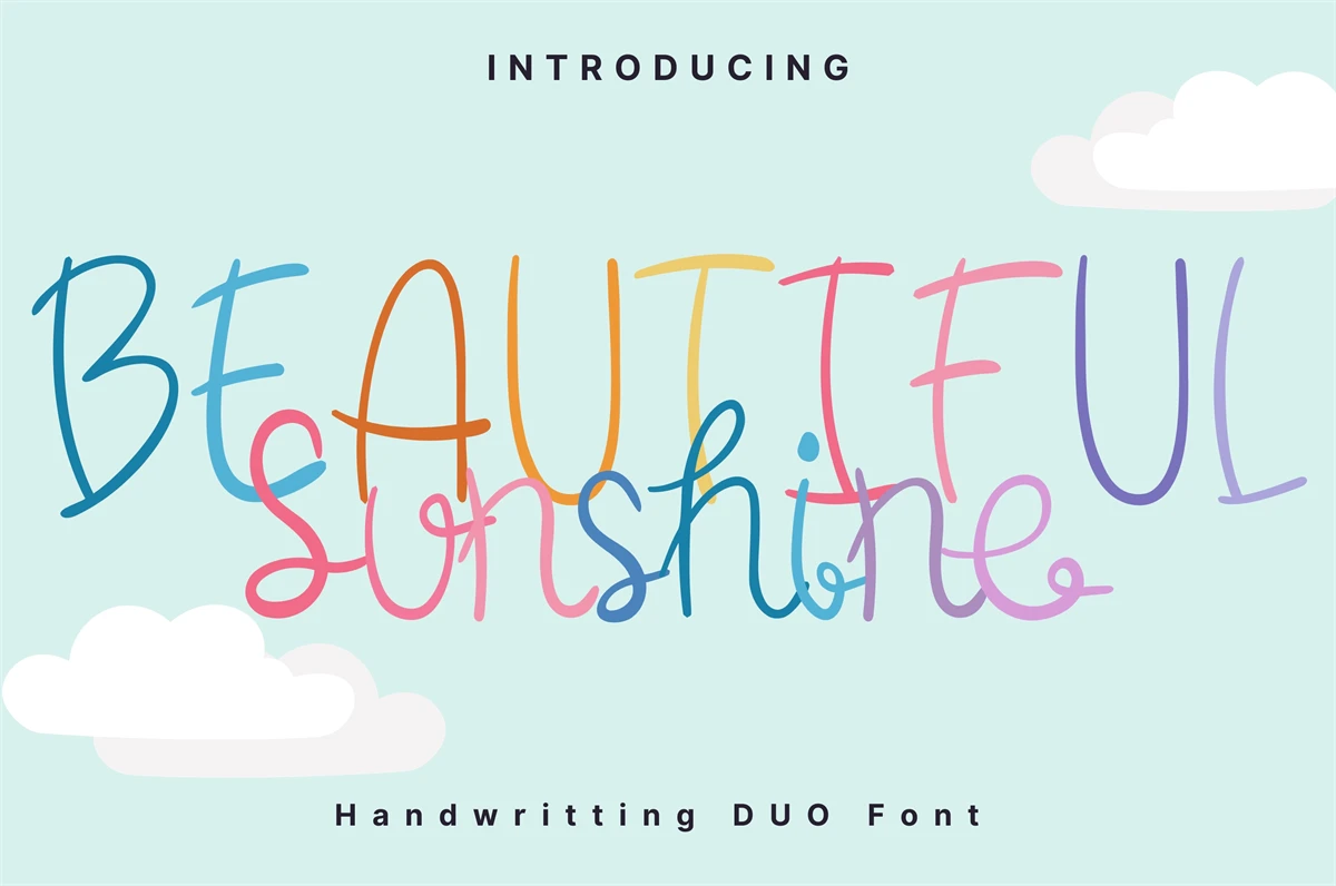 Beautiful Sunshine Style is a whimsical and clean handwritten font. It can easily be matched to an incredibly large set of projects, so add it to your creative ideas and notice how it makes them stand out!