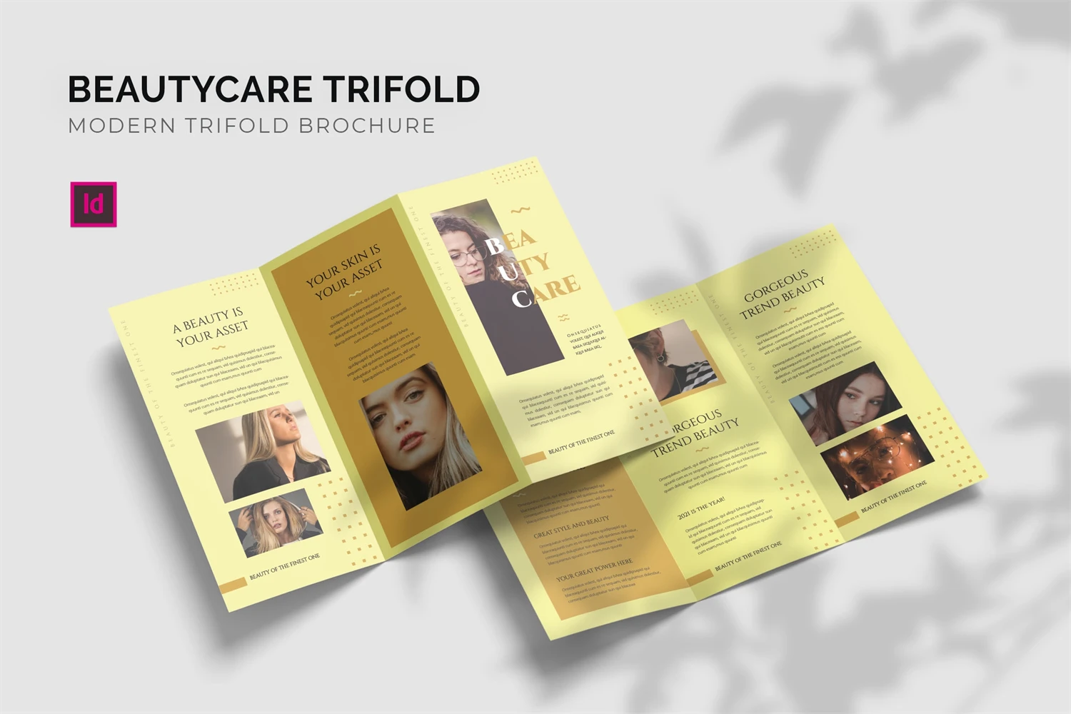 Beauty Care - Trifold Brochure We present this Trifold Brochure for you, simple, very elegant and professional and this Trifold Brochure is suitable for all types of your business,company or corporate, made with adobe inDesign (indd), very easy to customize, Hope you Like it dont forget to rate, Thanks You.
