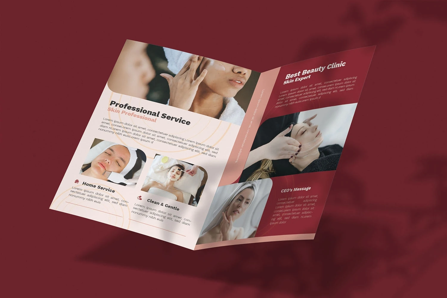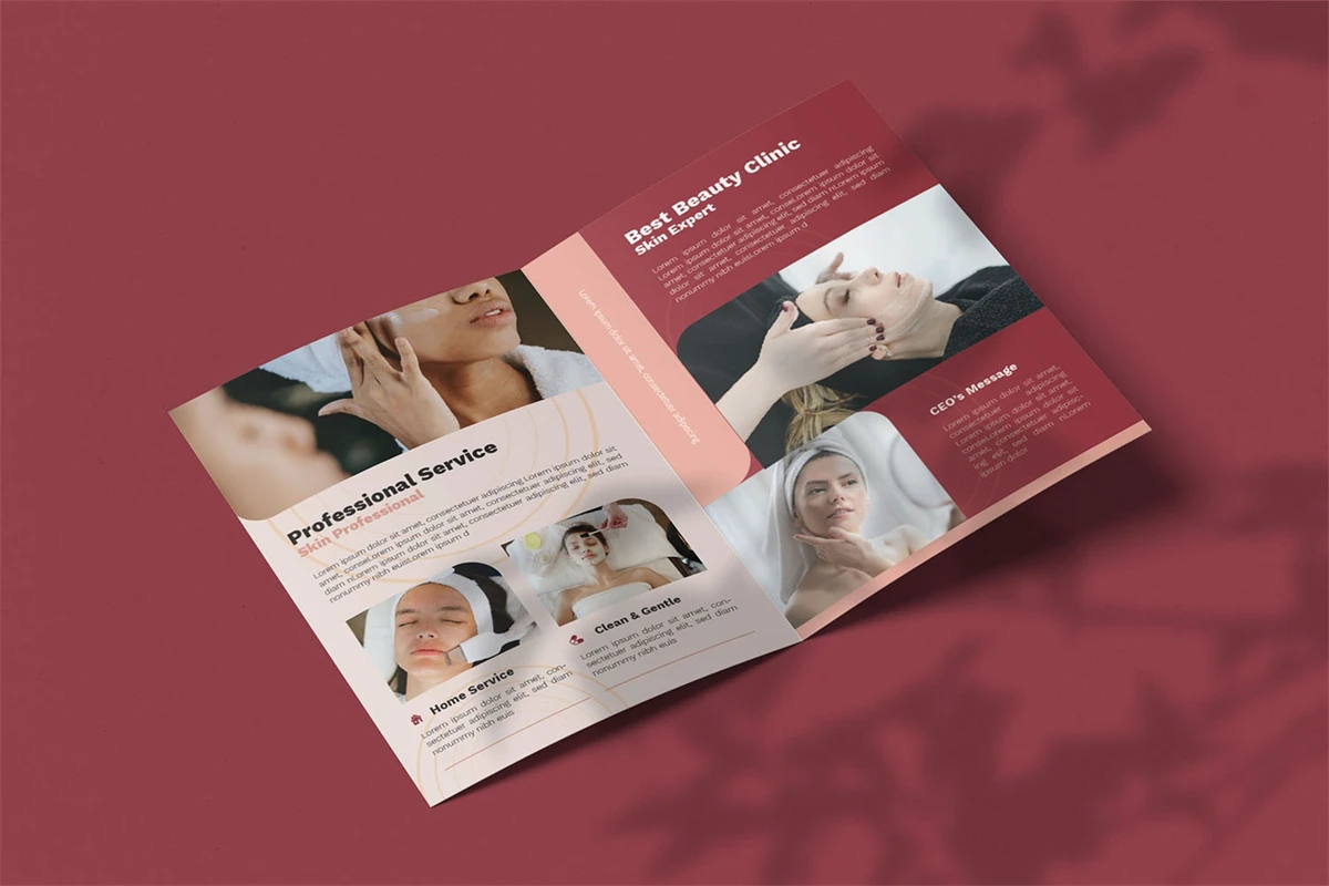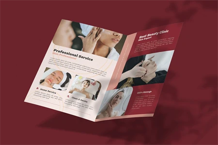 Beauty Clinic - Bifold Brochure We present this Bifold Brochure for you, simple and very elegant, and this Bifold Brochure is suitable for all types of your business, made with Adobe InDesign (INDD), Adobe Photoshop (PSD) and Adobe Illustrator (AI), very easy to customize, Hope you Like it, dont forget to rate, Thanks.
