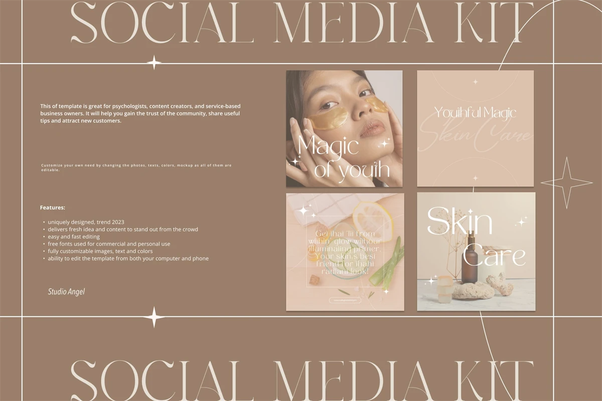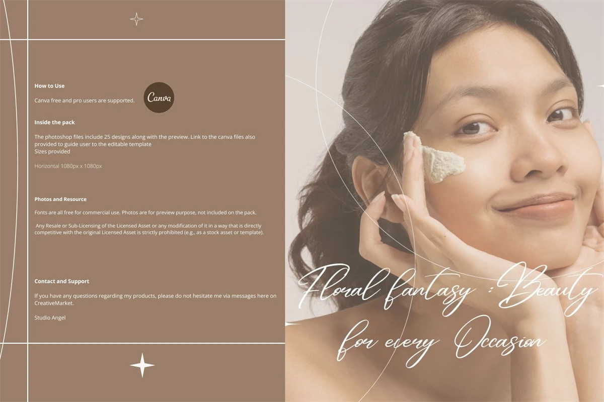 The photoshop files include 25 designs along with the preview. Link to the canva files also provided to guide user to the editable template Sizes provided