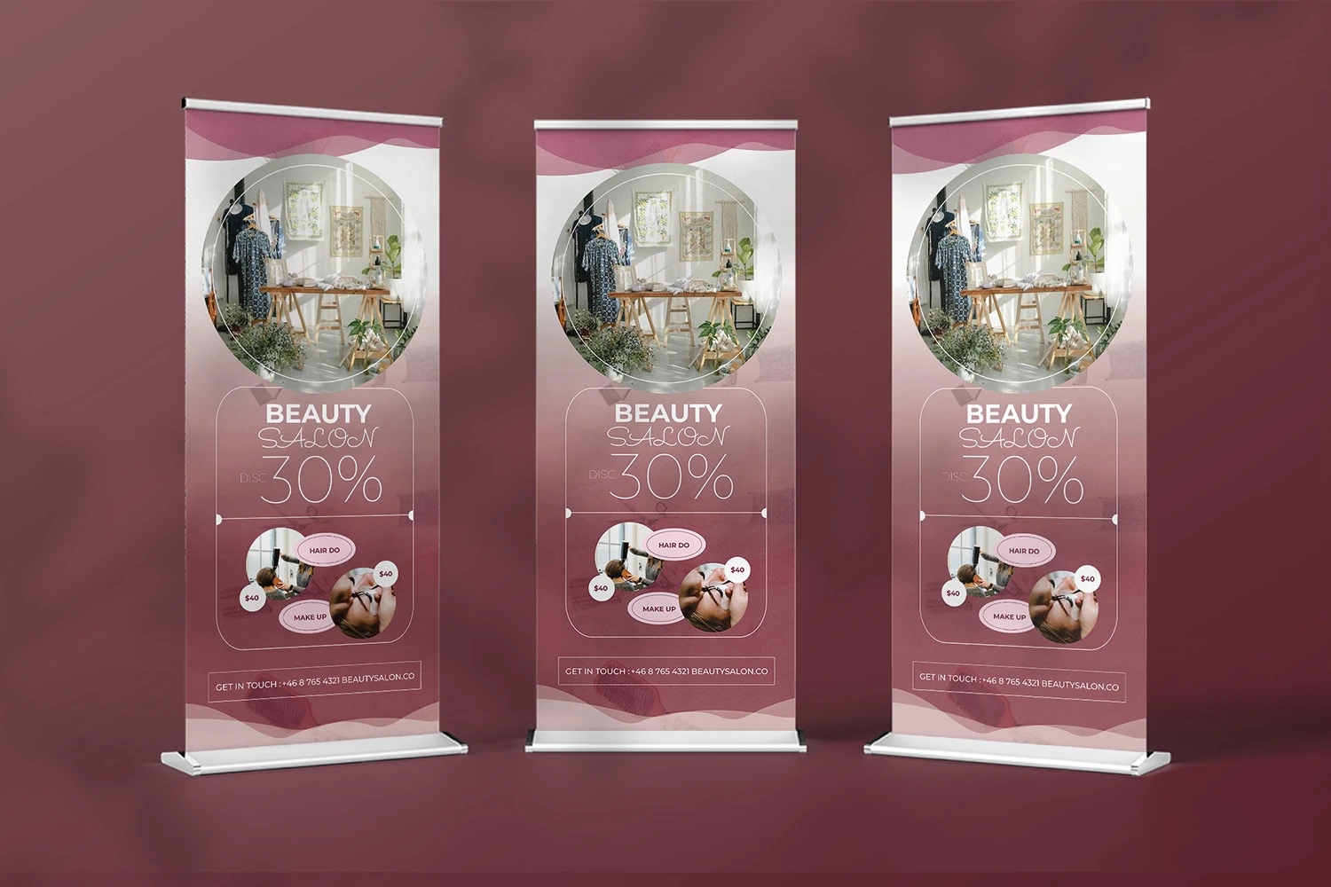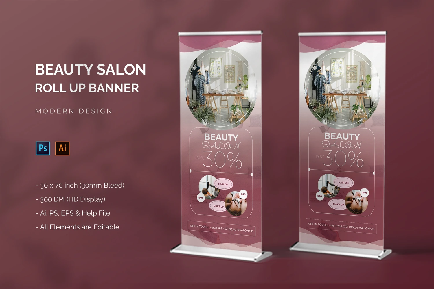 This is **Beauty Salon - Roll Up Banner** Don't wait, get it right now! , All Your Roll-Up Banner Needs, Professional or Personal. This stylish and adaptable template is perfect for your company's promotional materials.