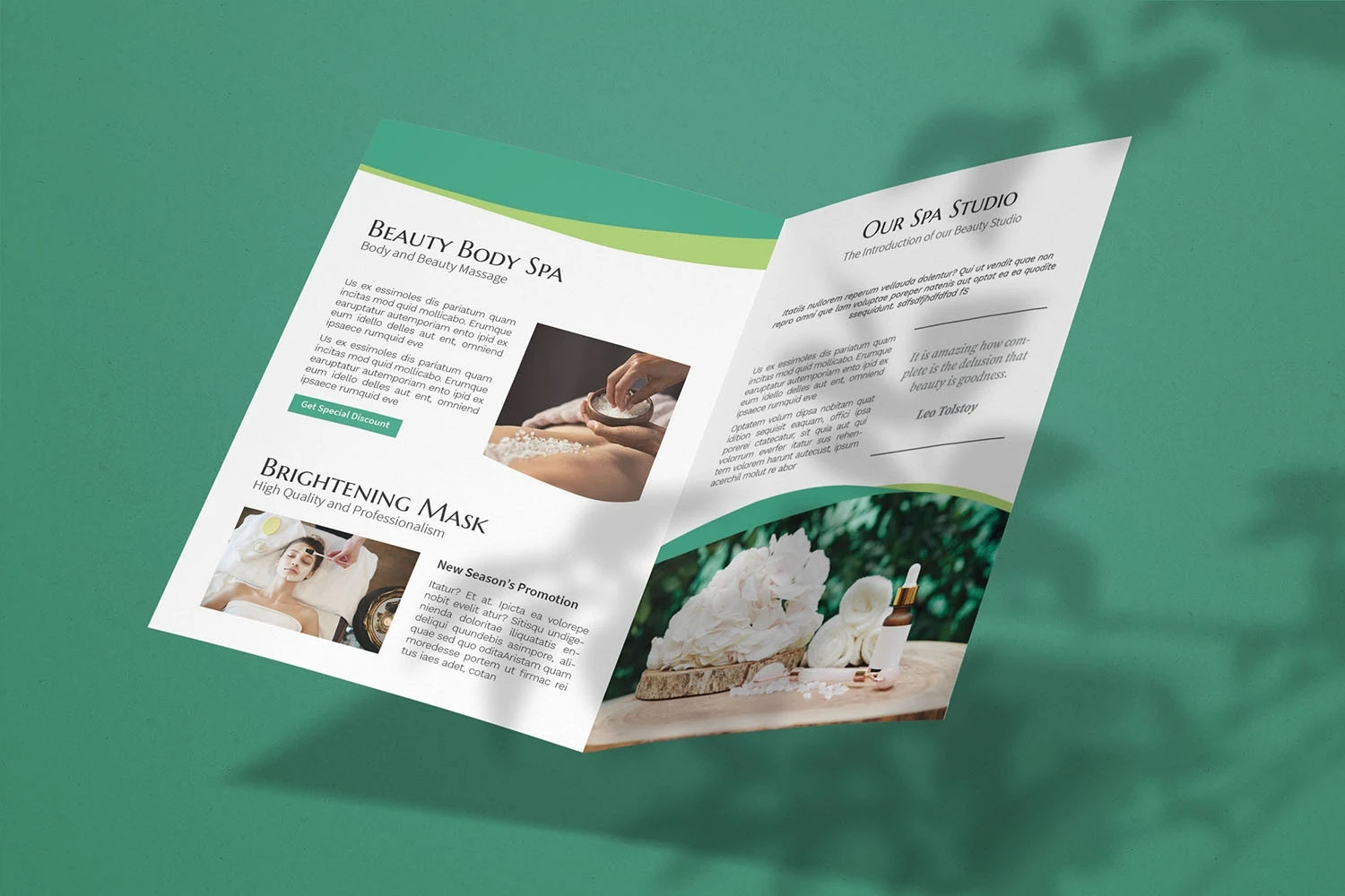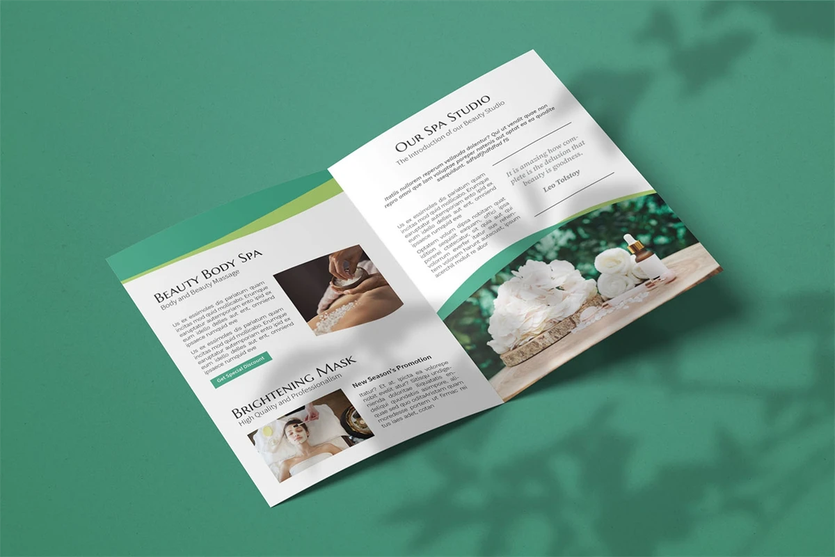 Beauty Spa - Bifold Brochure We present this Bifold Brochure for you, simple and very elegant, and this Bifold Brochure is suitable for all types of your business, made with adobe inDesign, very easy to customize, Hope you Like it, dont forget to rate, Thanks.