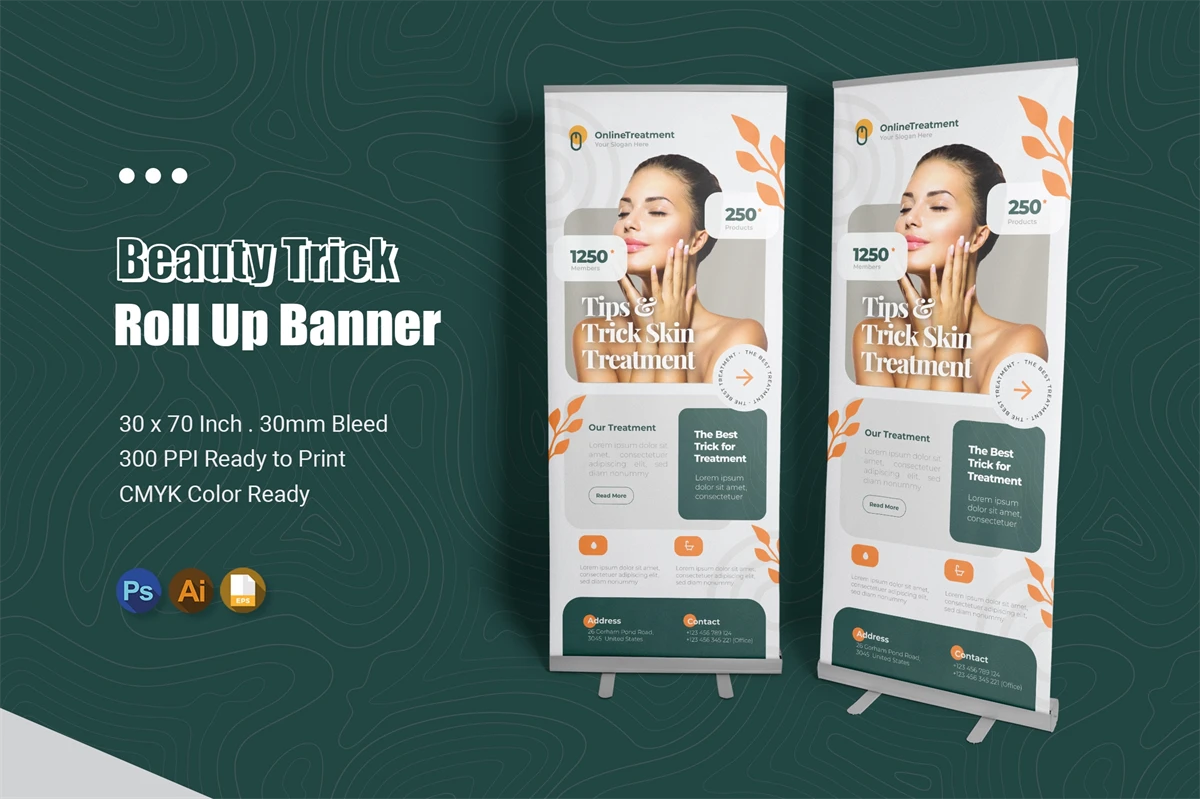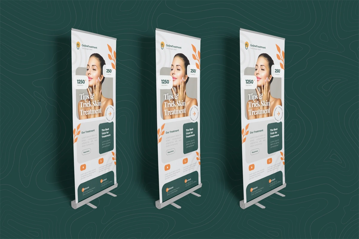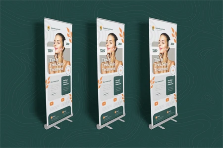The versatile roll up banner template is very easy to use, modify and customize. Use this roll up banner and make the most of your campaign!