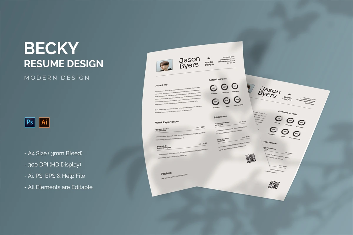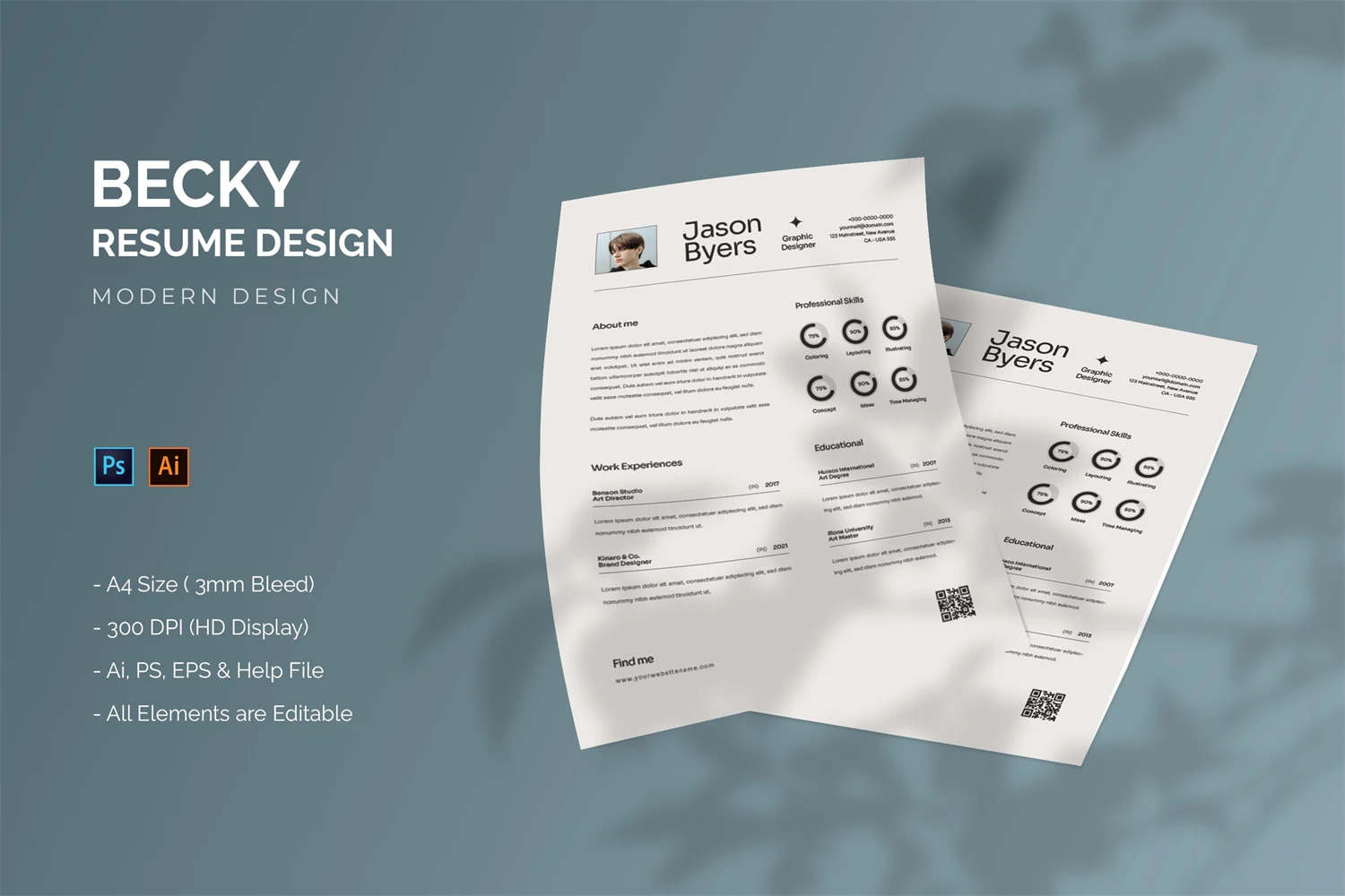 This is **Becky - Resume Template** Get it now!, CV Resume for All business and personal needs. This design is great for your business and will make your interest, elegant, and easily editable according to your needs (**Adobe Illustrator, Adobe Photoshop**). You can use this CV Resume for personal purposes, or company purposes, I hope you enjoy this, Hope you Like it, and dont forget to rate it, Thanks.