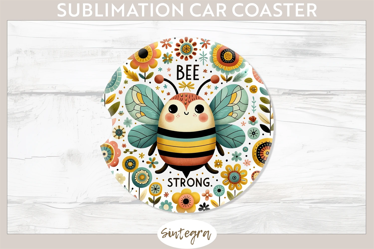 Bee Strong v3 Car Coaster Sublimation