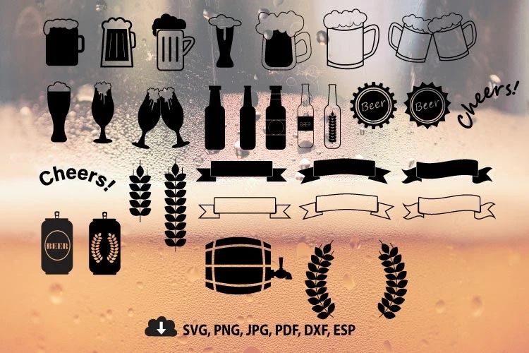 Beer Bundle, Beer Mug, Beer Clipart, Alcohol, Beer Svg Bundle, Glass Bottle, Beer Mug Silhouette, Beer Glass Svg, Cut file, Cricut