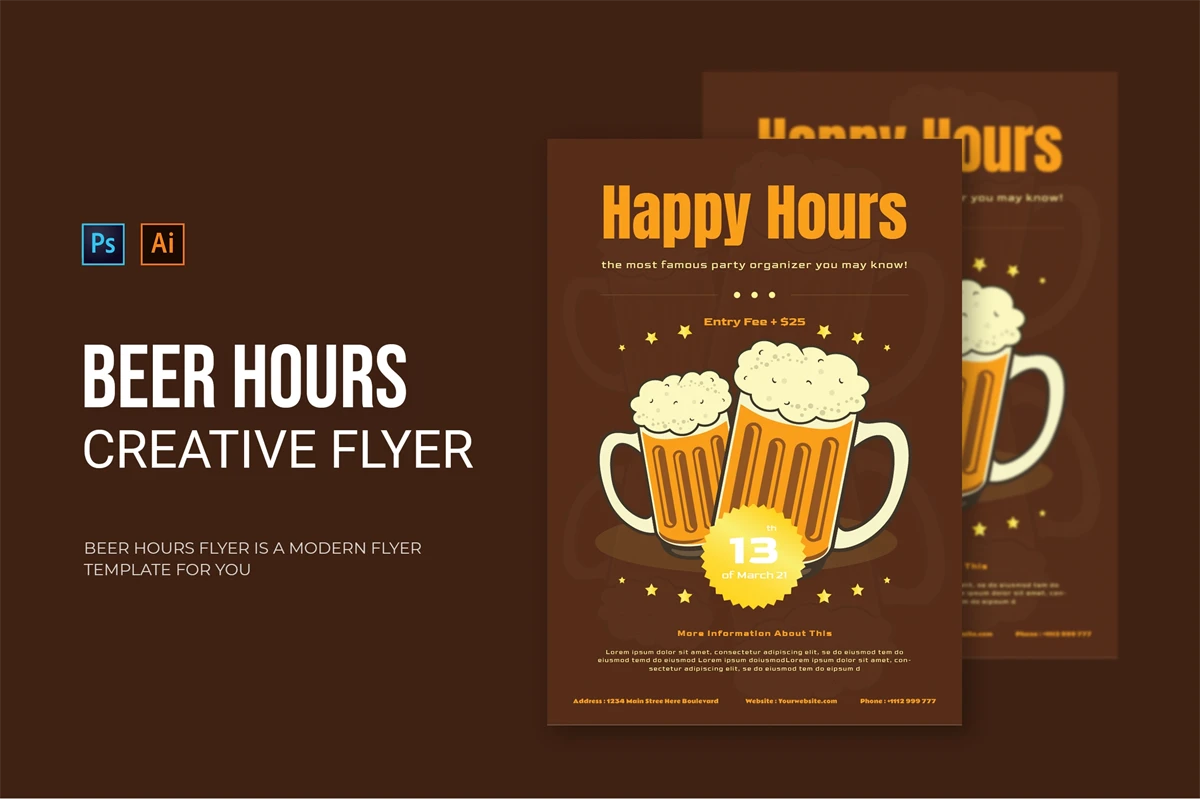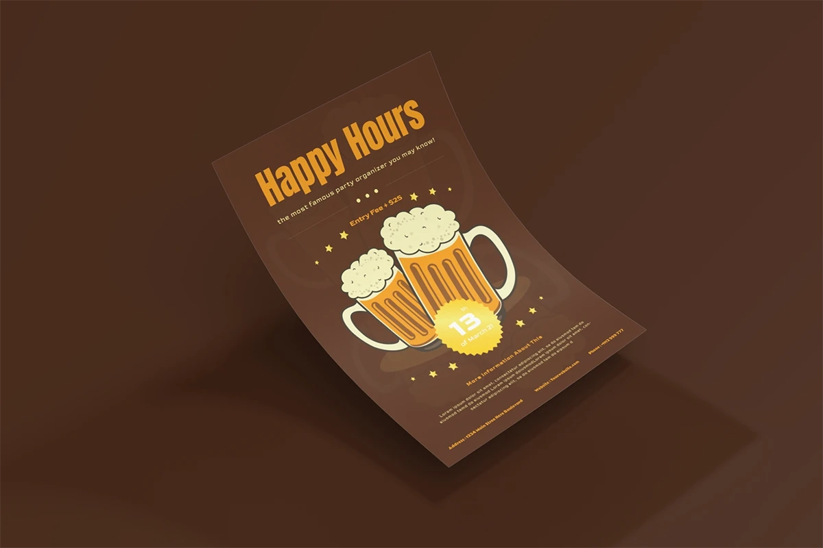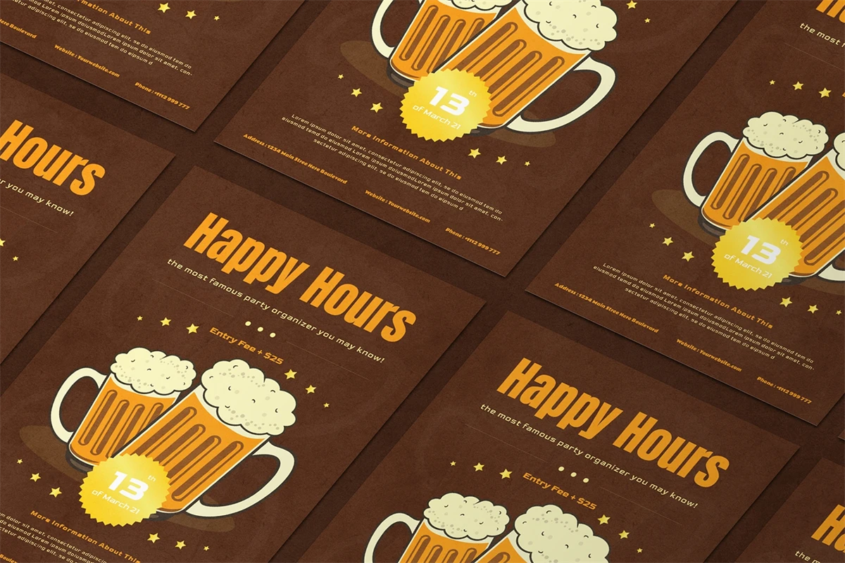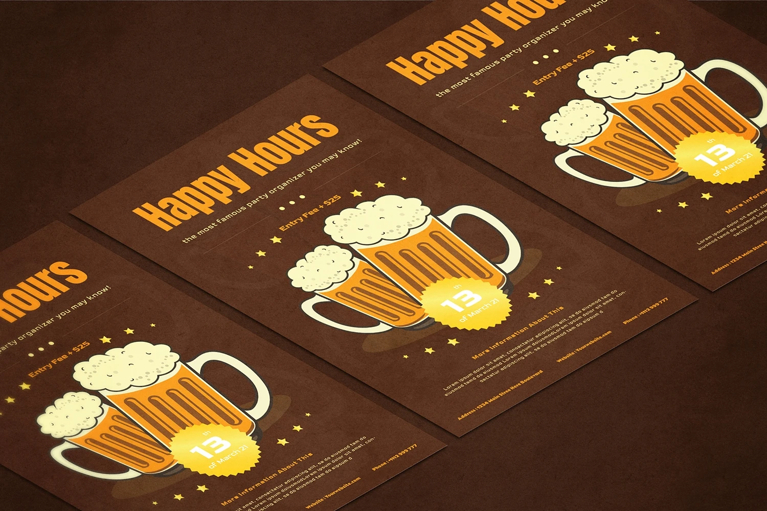 Beer Happy Hours - Flyer. This Flyer template is designed for your company's business needs. very clean and elegant, and also easily edited and adjusted to your liking
