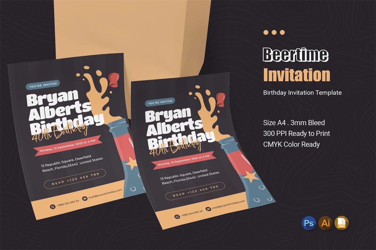 Of course you want to invite friends to your birthday party with the best invitations! Impress the invited guests with your style of invitation, by using this invitation card template. You can easily edit & customize each of the designs because every component is well organized and editable.
