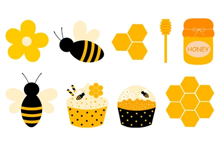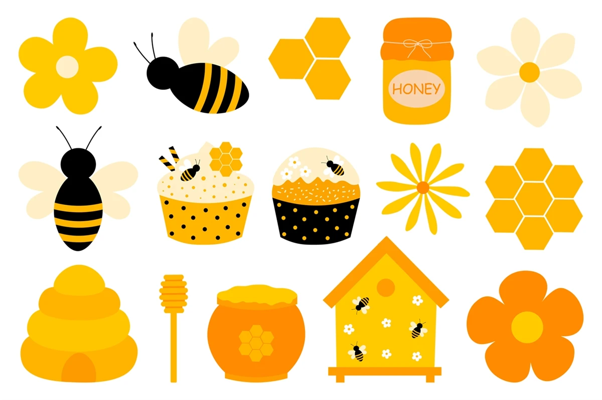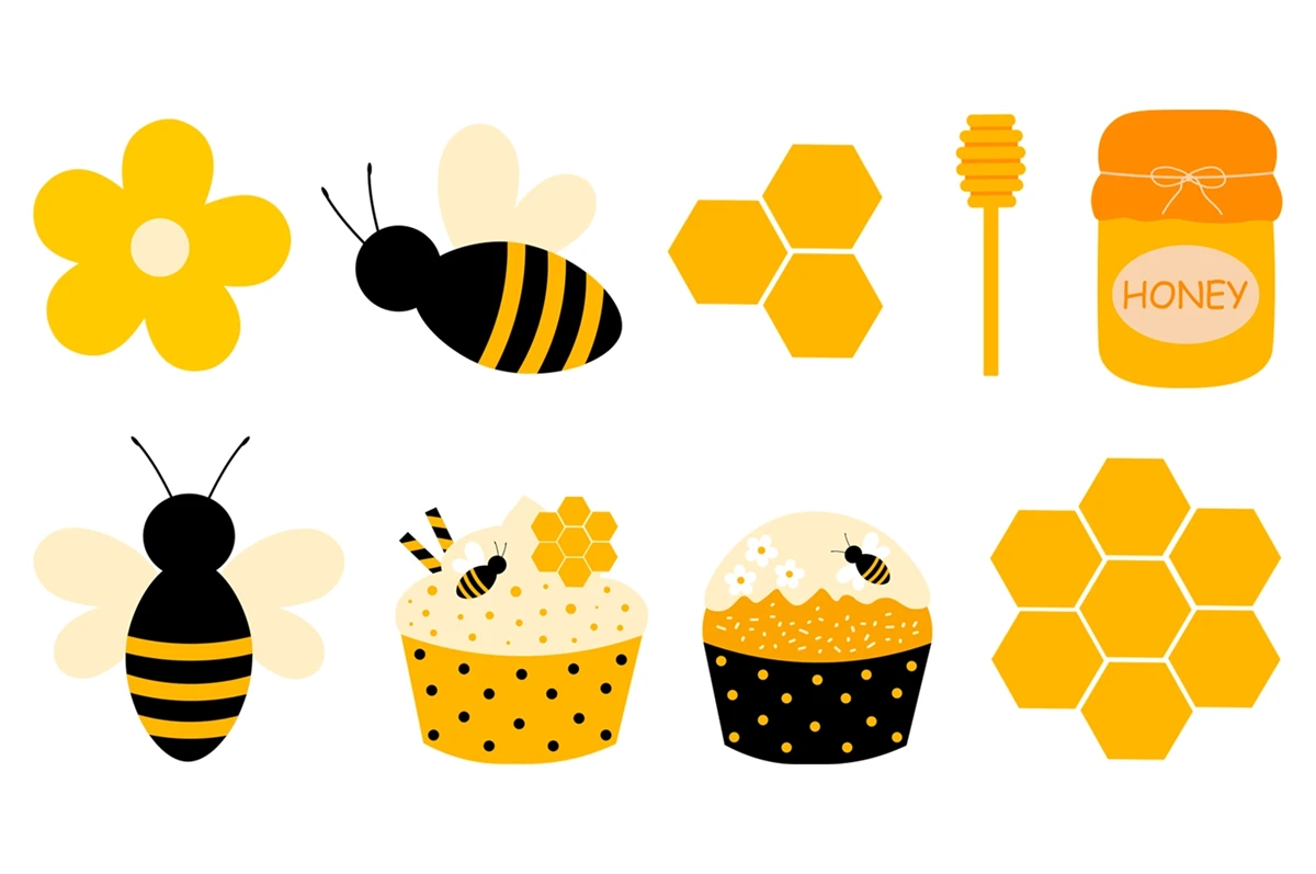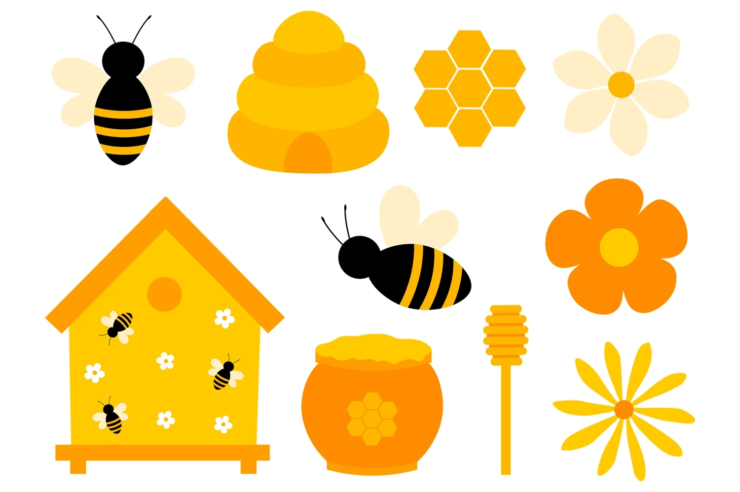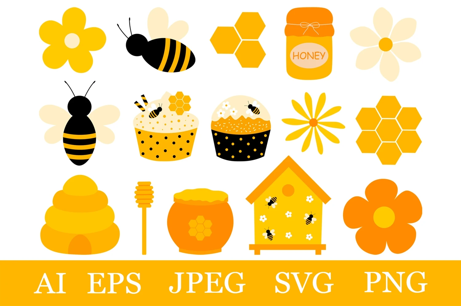 Bees clipart. Bees Honey bundle SVG. Bees flowers graphic