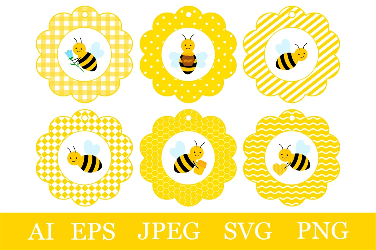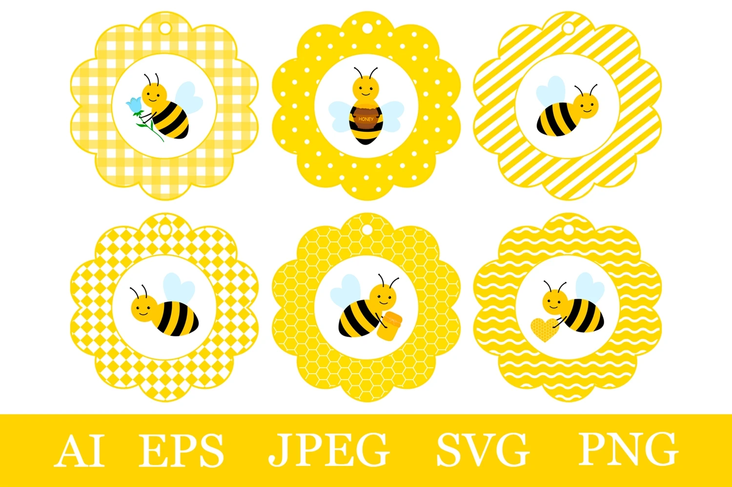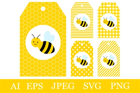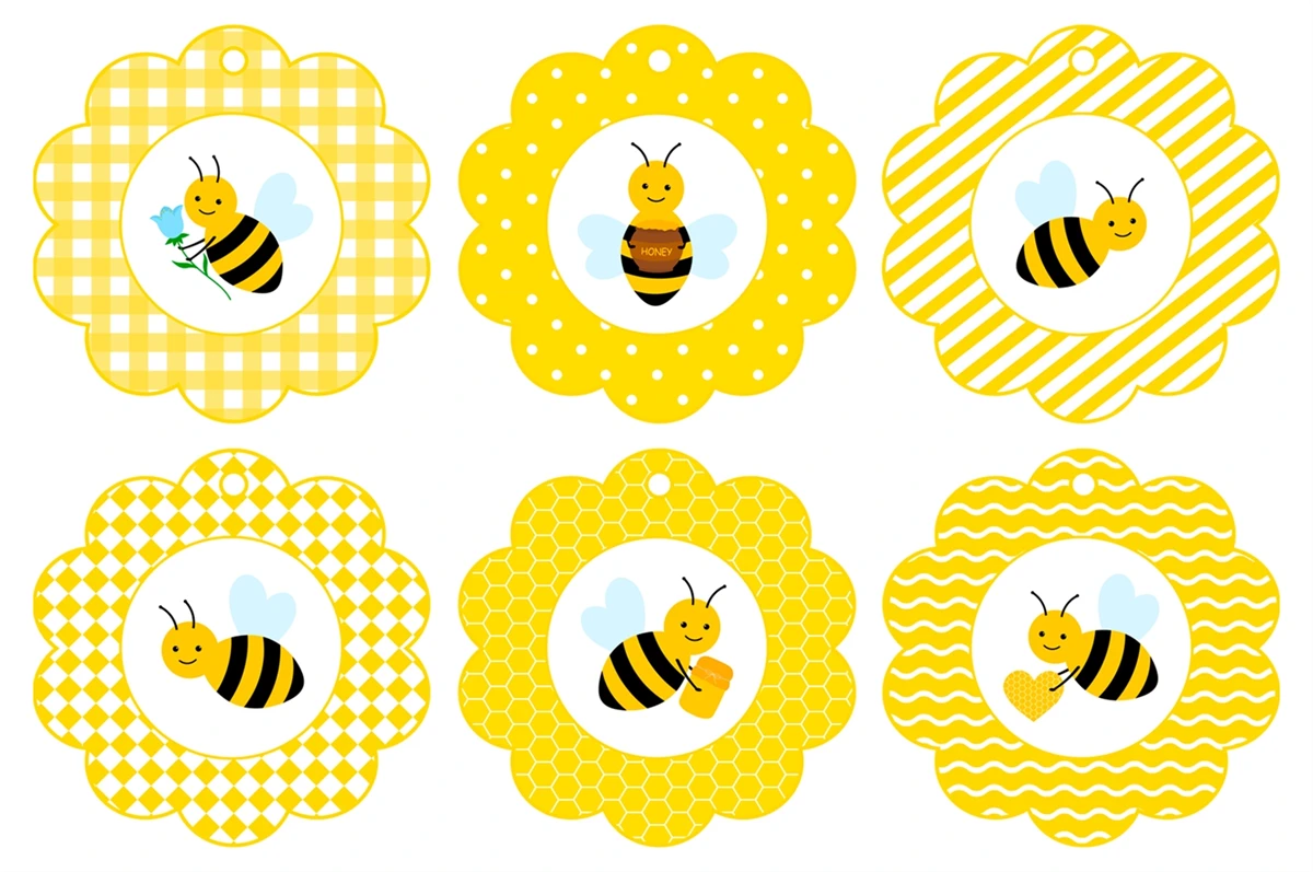 Bees Gift Tags printable. Bees Gift Tags template. Bees SVG