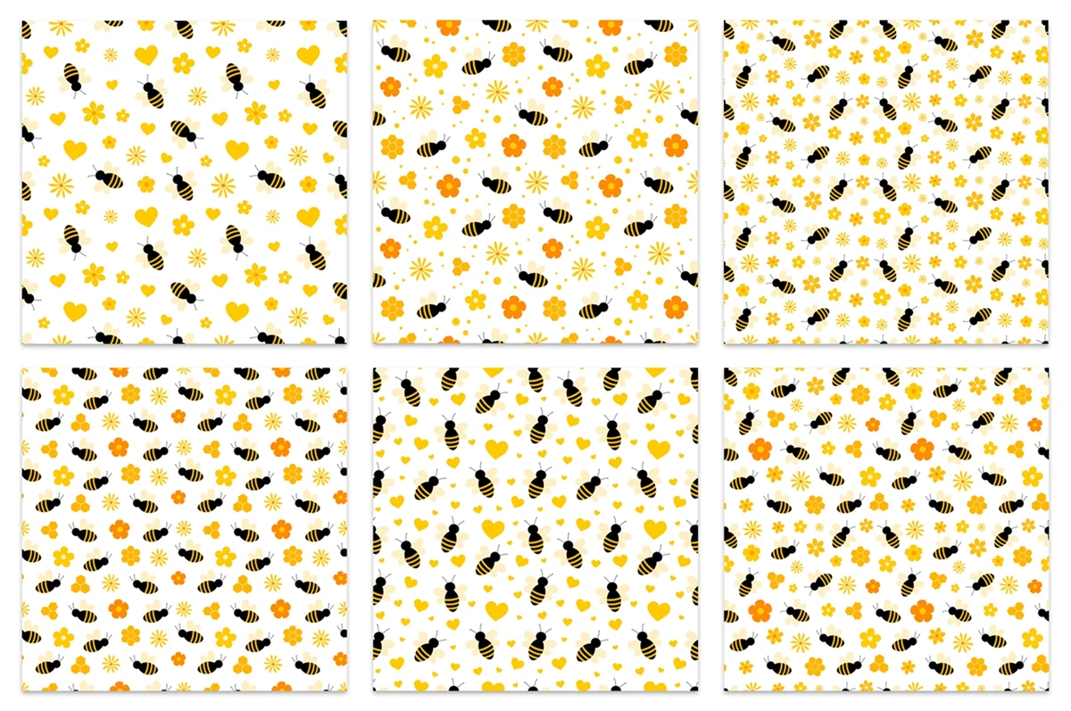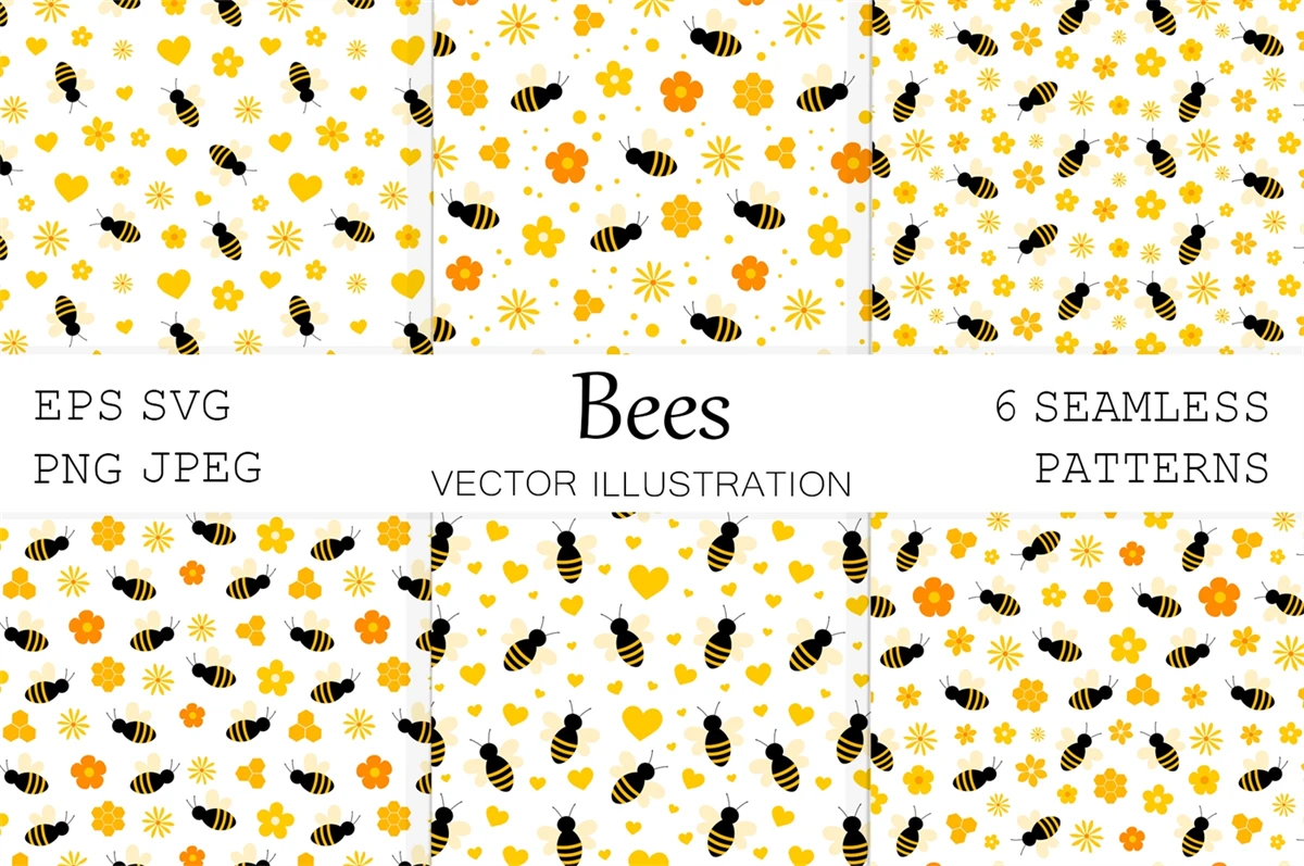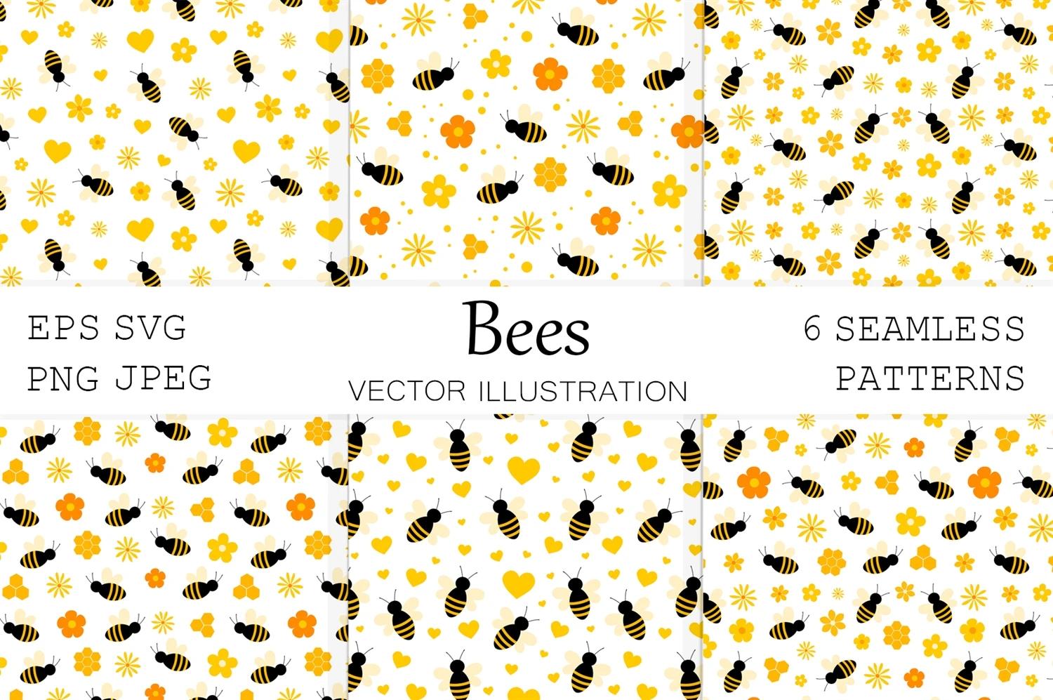 Bees pattern. Honey pattern. Bees background. Bees SVG