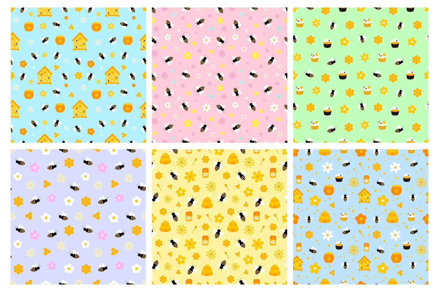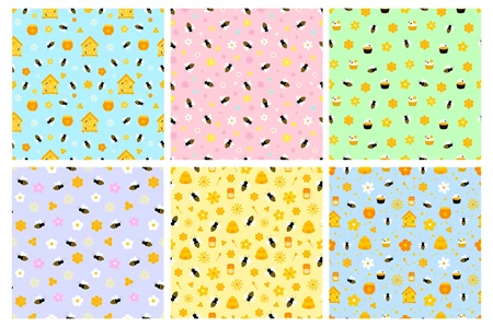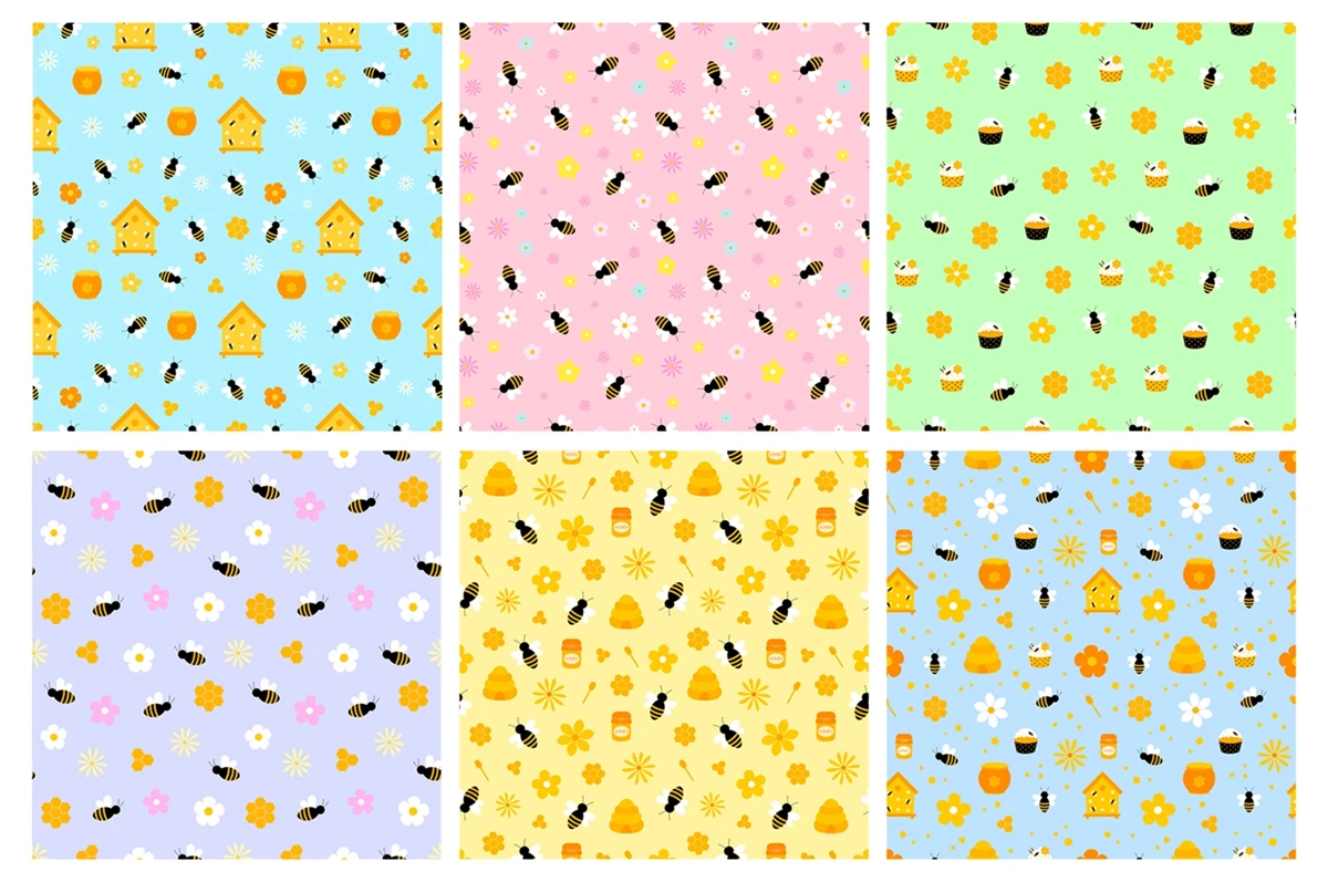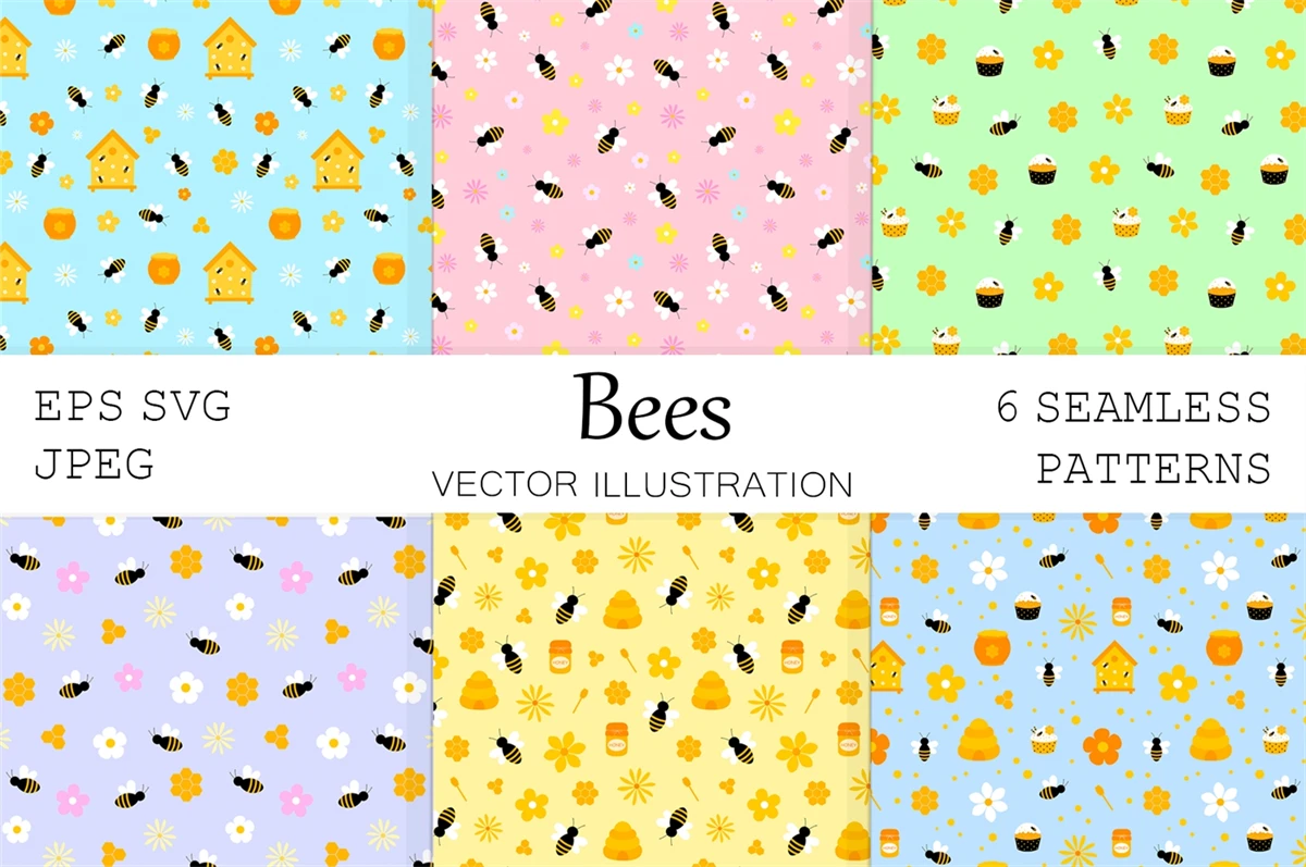 Bees pattern. Honey pattern. Bees background. Bees SVG