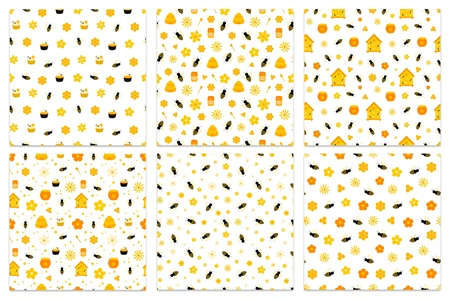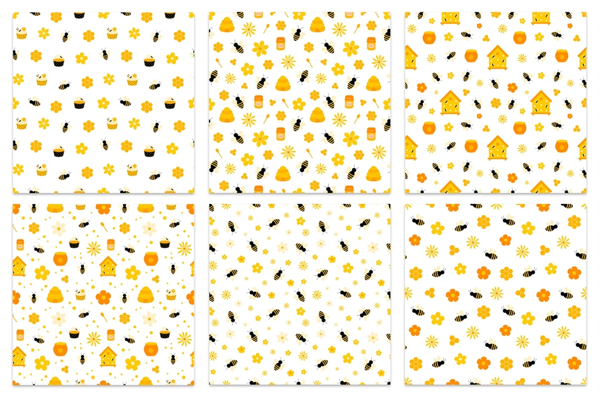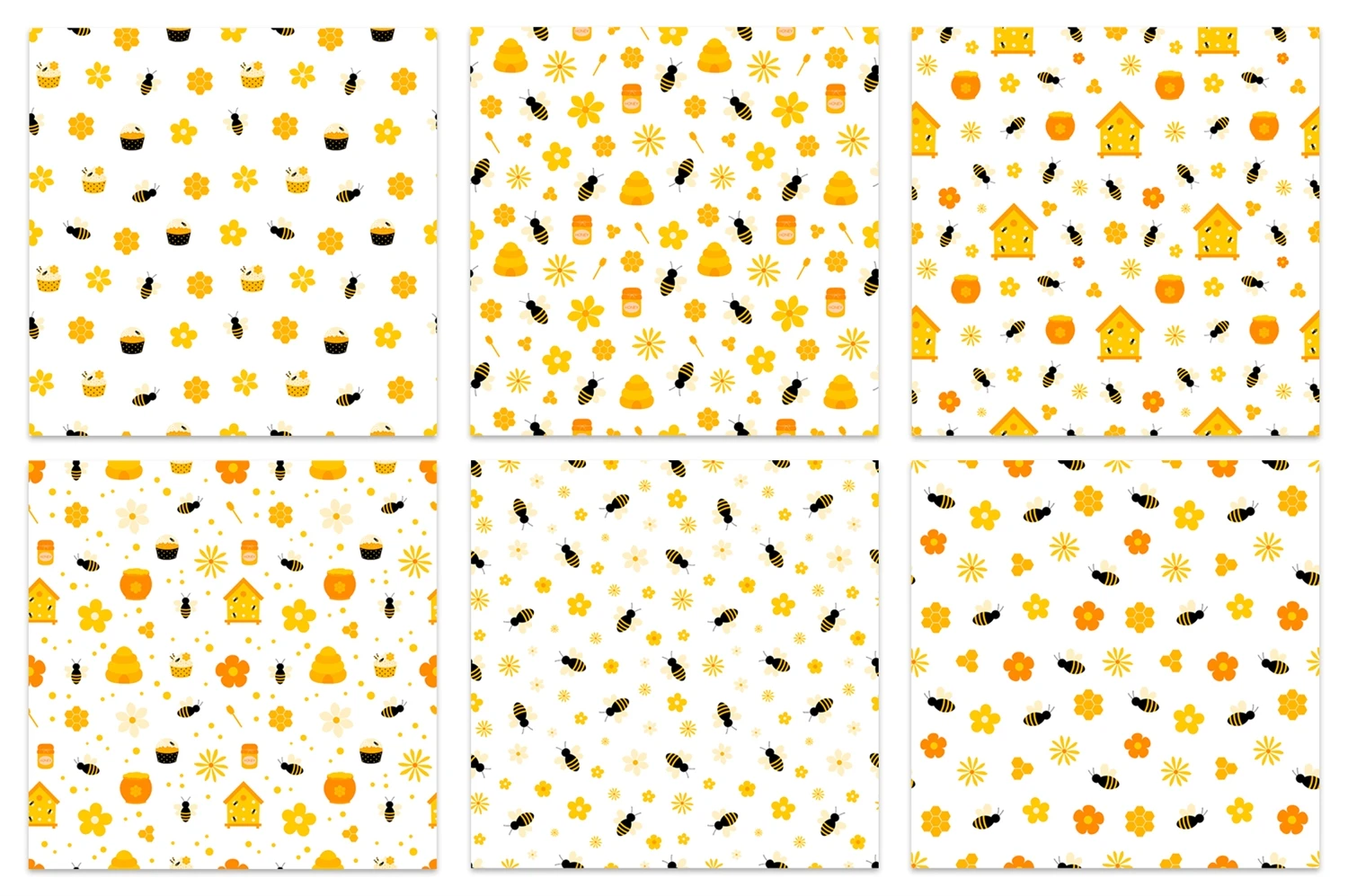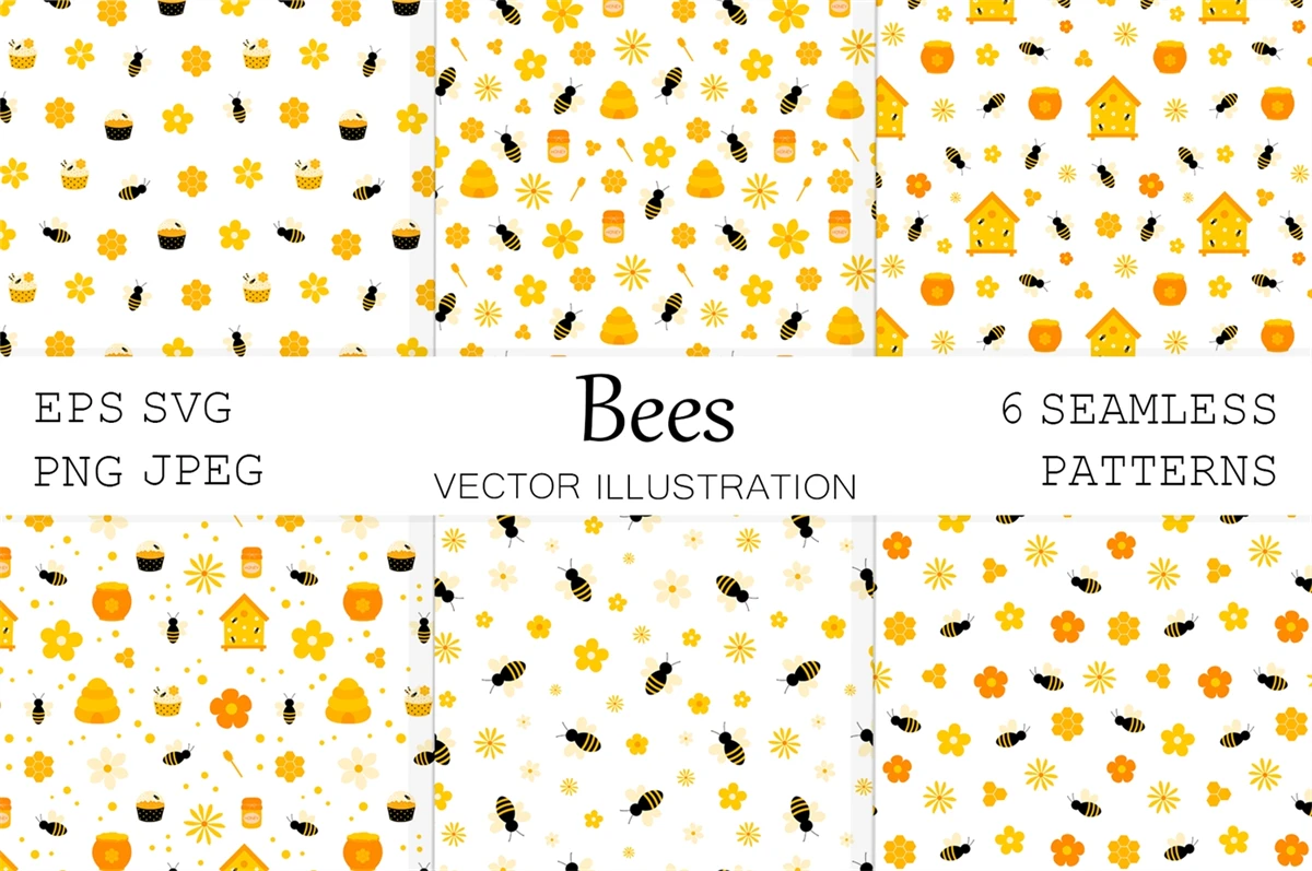 Bees pattern. Honey pattern. Bees background. Bees SVG