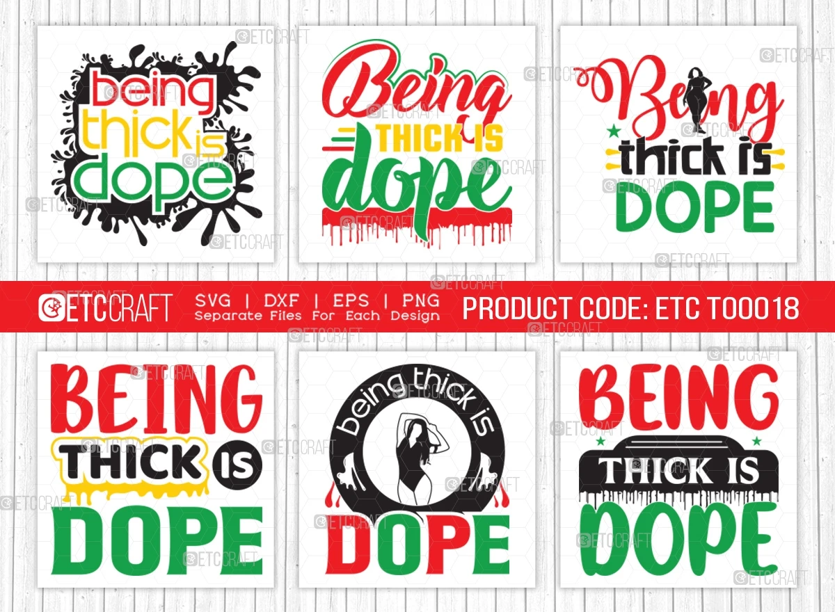 Our "Being Thick Is Dope SVG Bundle" T-Shirt Design is a one-of-a-kind creation that you won't find anywhere else. Stand out from the crowd and make a unique with this exclusive design that celebrates the beauty of all body types.