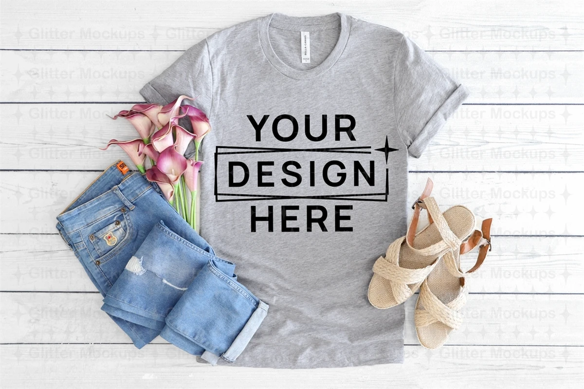 Bella Canvas 3001 Athletic Heather Mockup, Lifestyle, Png