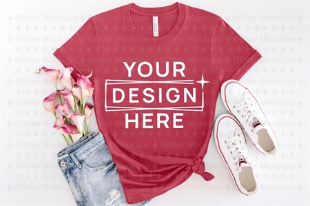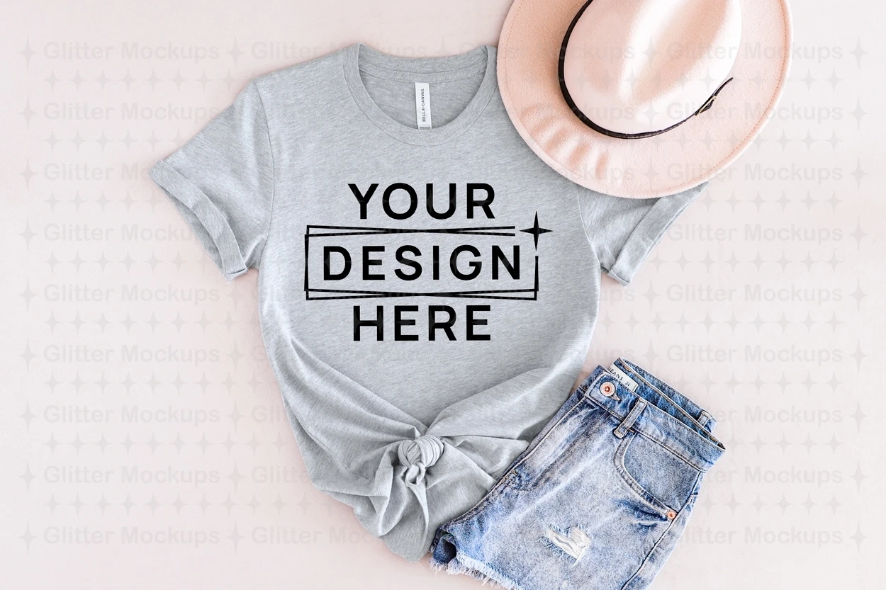 Bella Canvas 3001 Athletic Heather Mockup, Styled Tee, Png