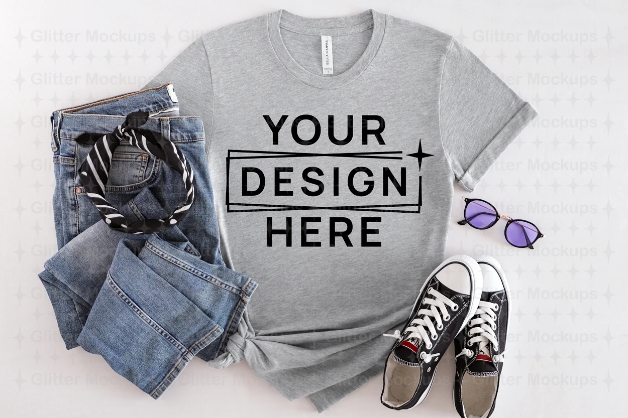Bella Canvas 3001 Athletic Heather Mockup, Unisex Tee, Png