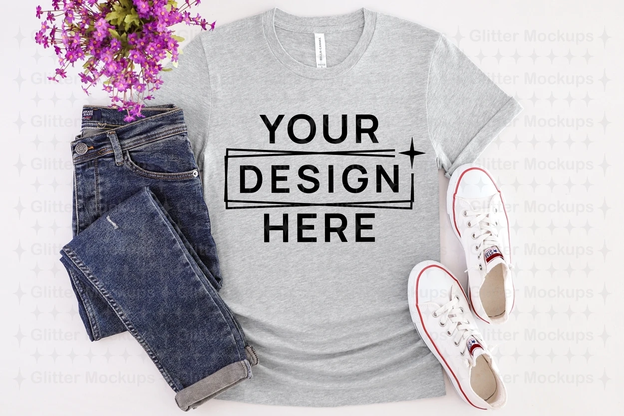 Bella Canvas 3001 Athletic Heather Mockup, Woman Tee, Png