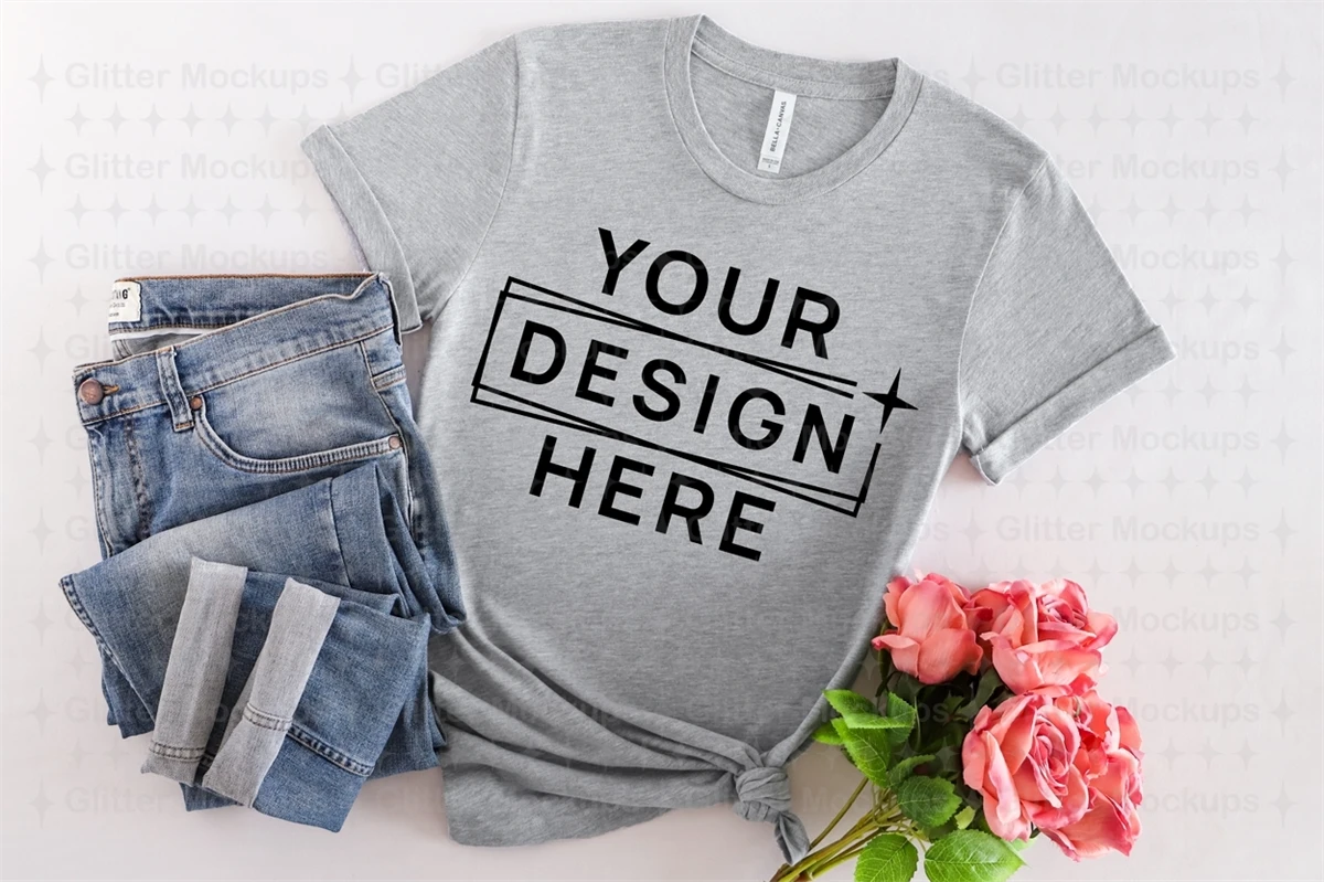 Bella Canvas 3001 Athletic Heather Mockup, Women, Spring