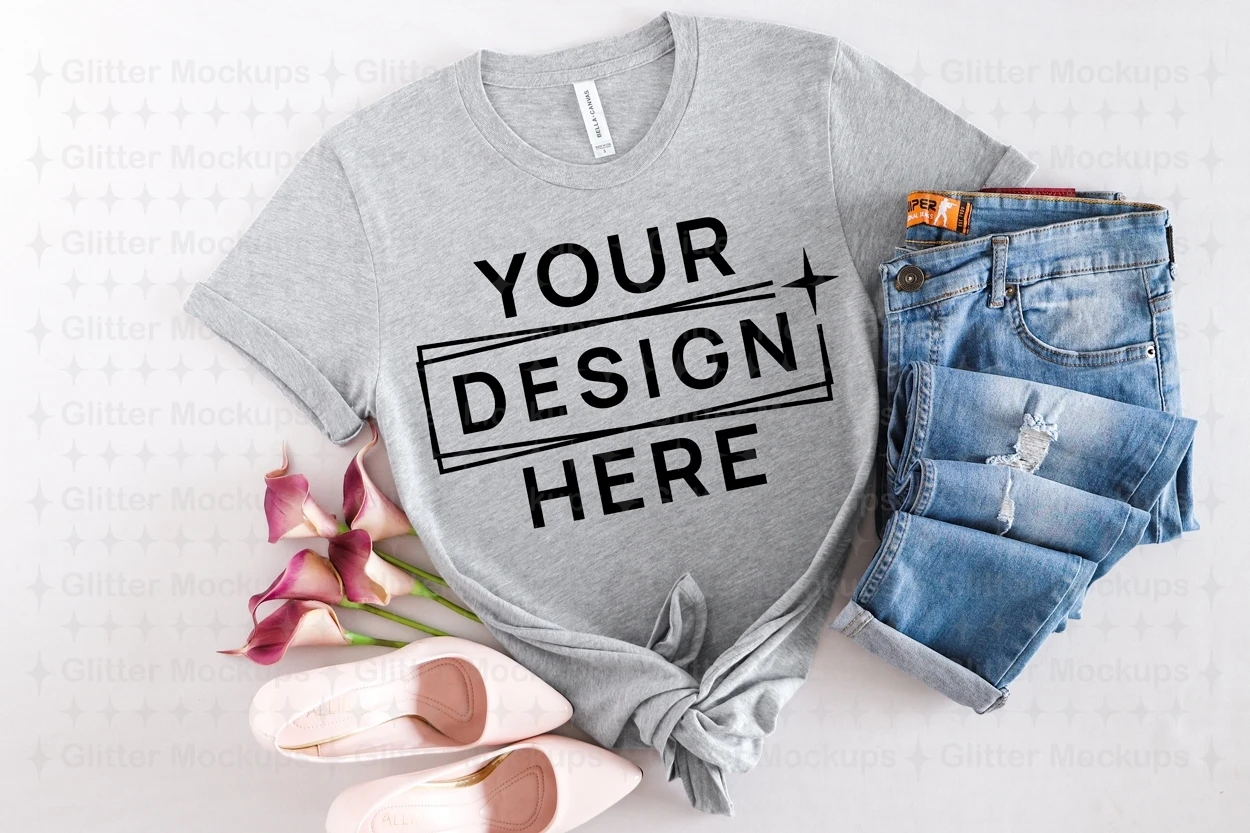 Bella Canvas 3001 Athletic Heather Mockup, Women Tee, Png