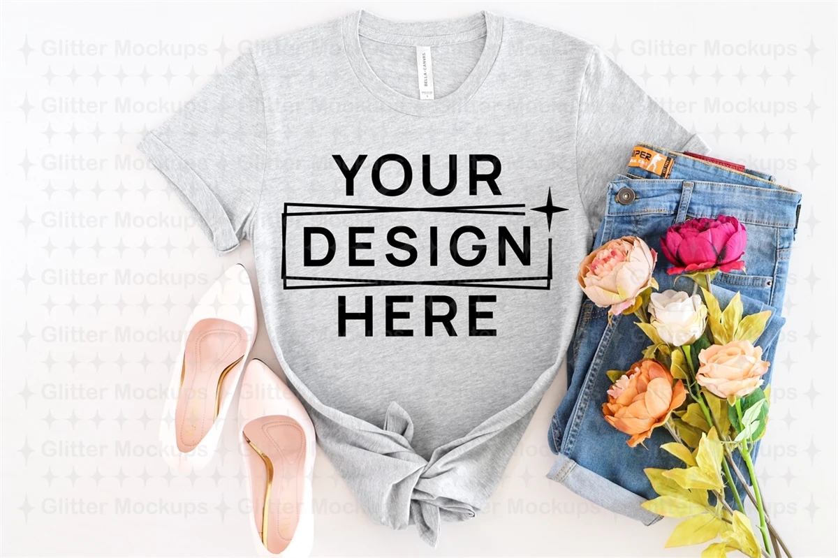 Bella Canvas 3001 Athletic Heather Mockup, Women TShirt, Png