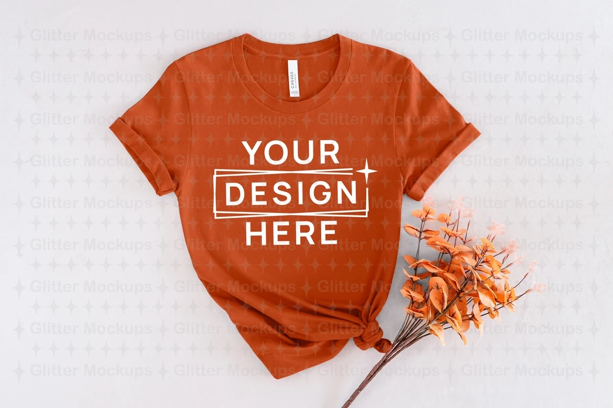 Bella Canvas 3001 Autumn Mockup, Flat Lay, Autumn, Plain