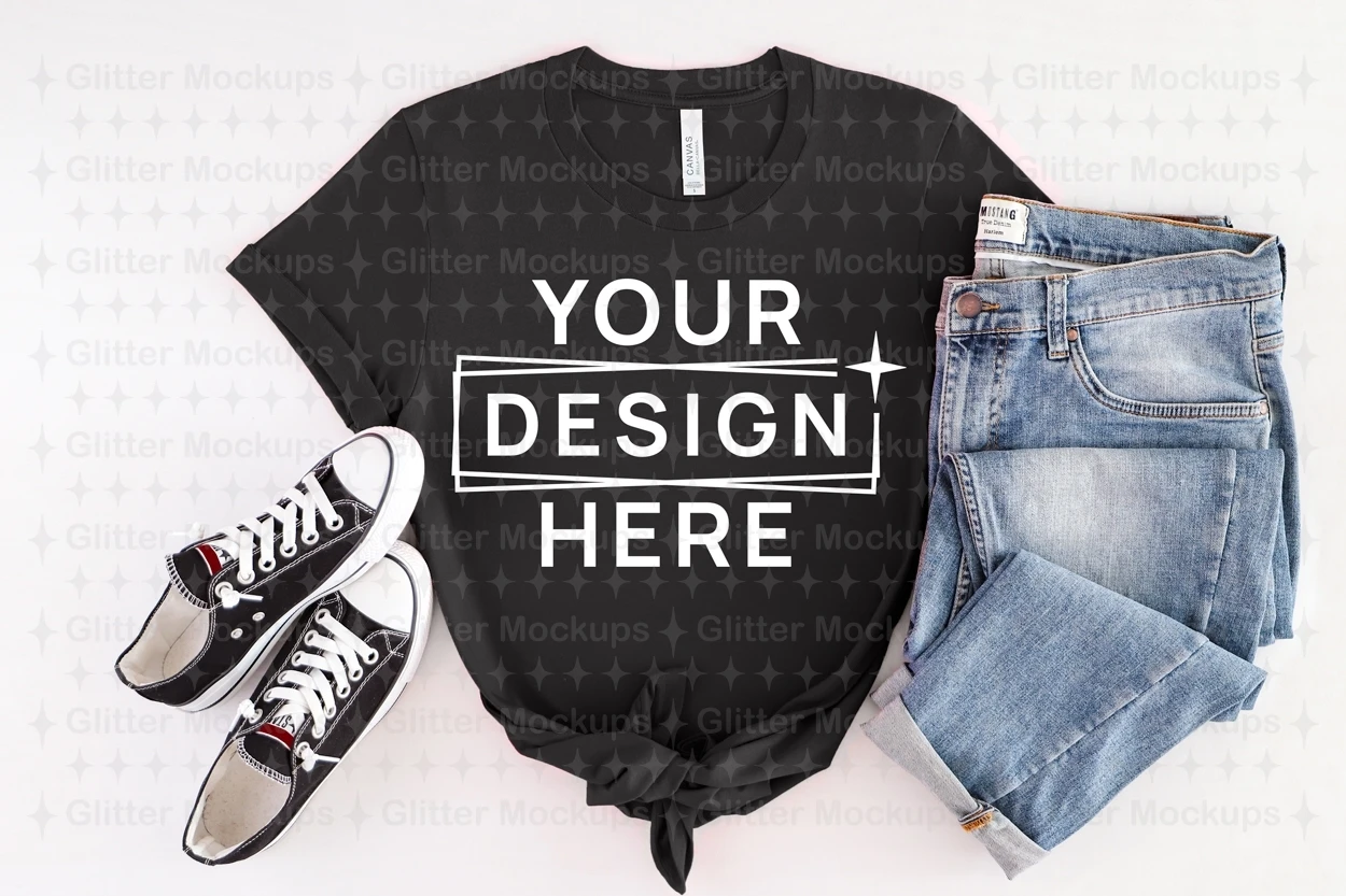 Bella Canvas 3001 Black Mockup, Unisex Tee Mockup, Spring