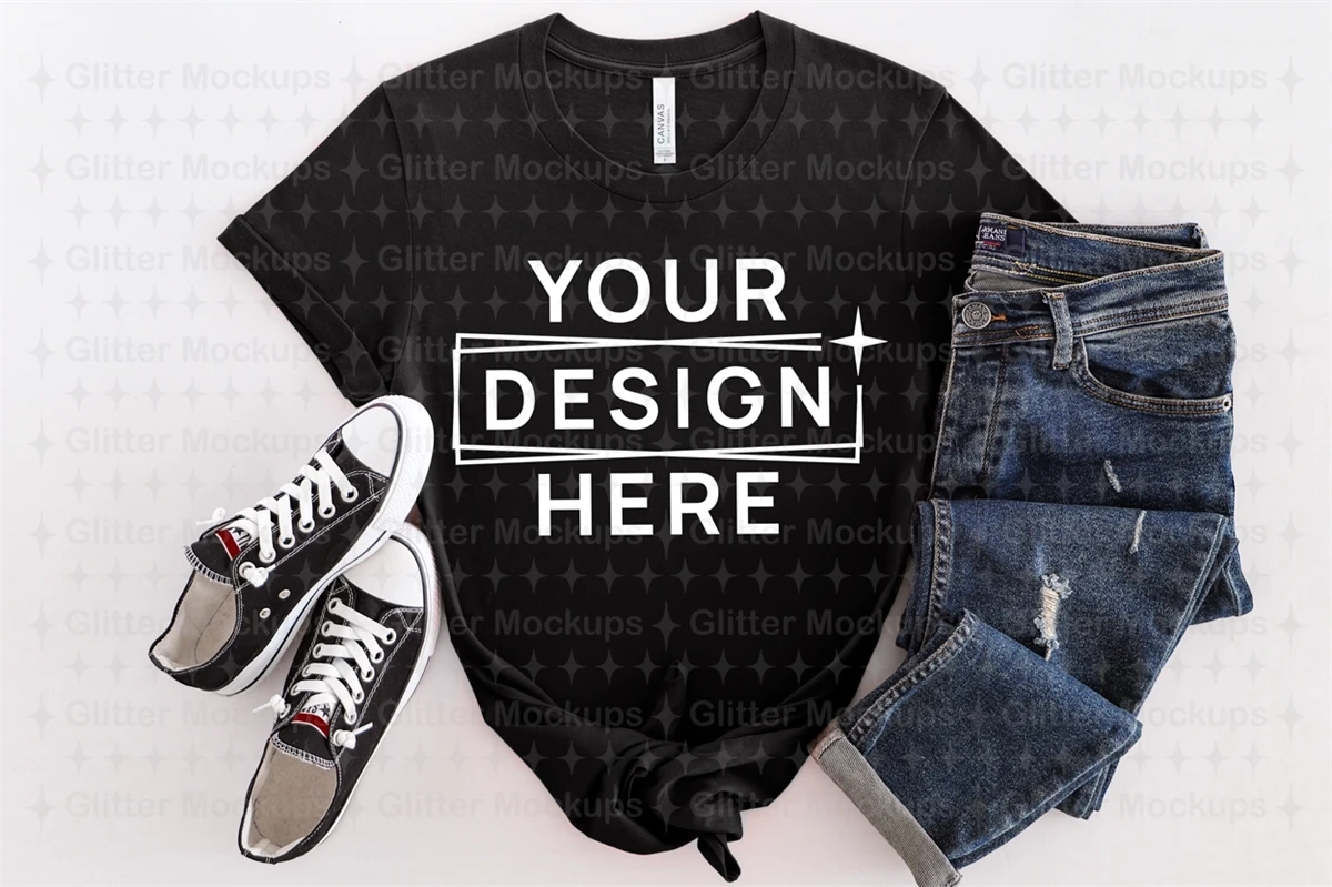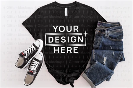 Bella Canvas 3001 Black Mockup, Unisex Tee, Summer, Png