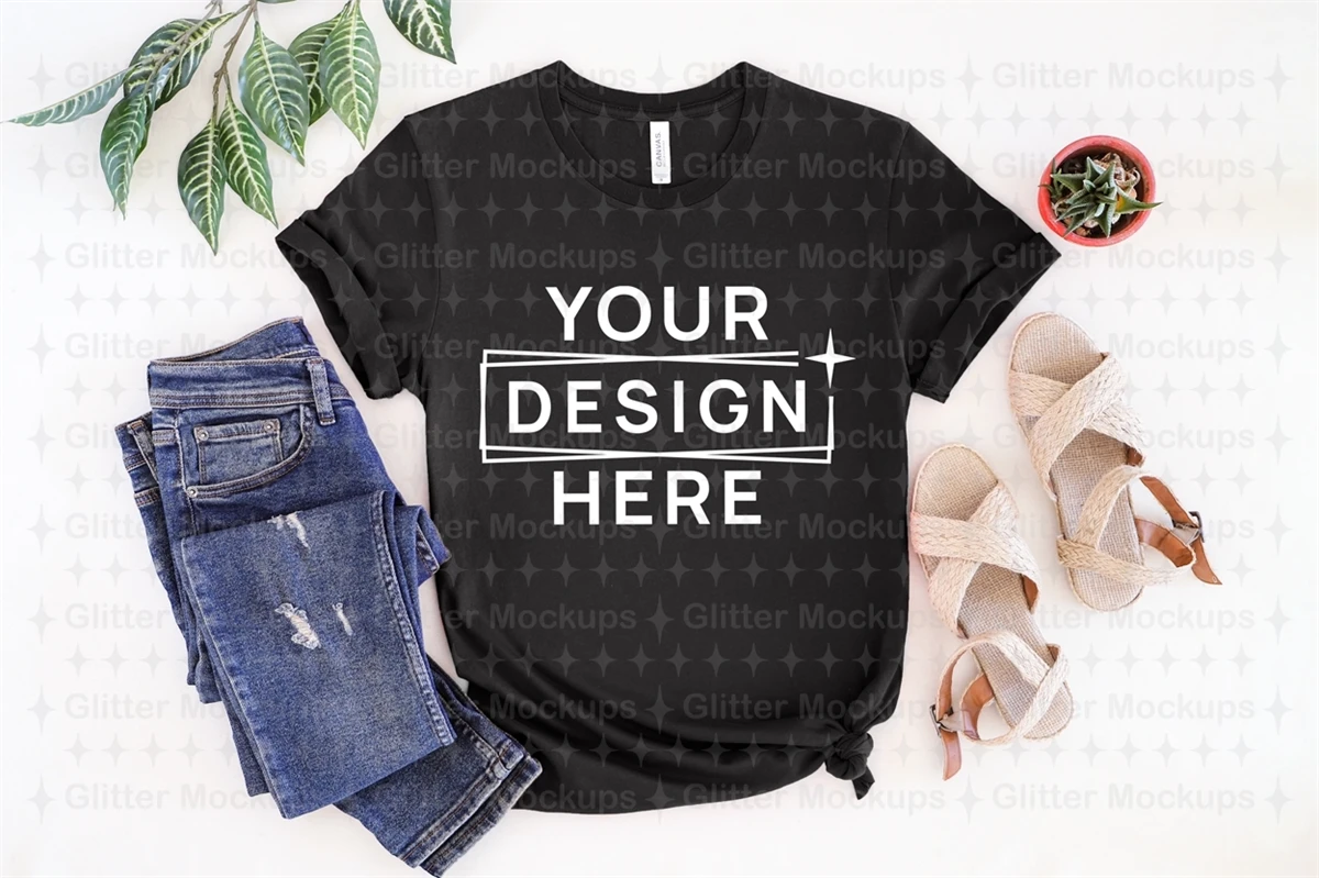 Bella Canvas 3001 Black Mockup, Women T-Shirt, Plain, Png