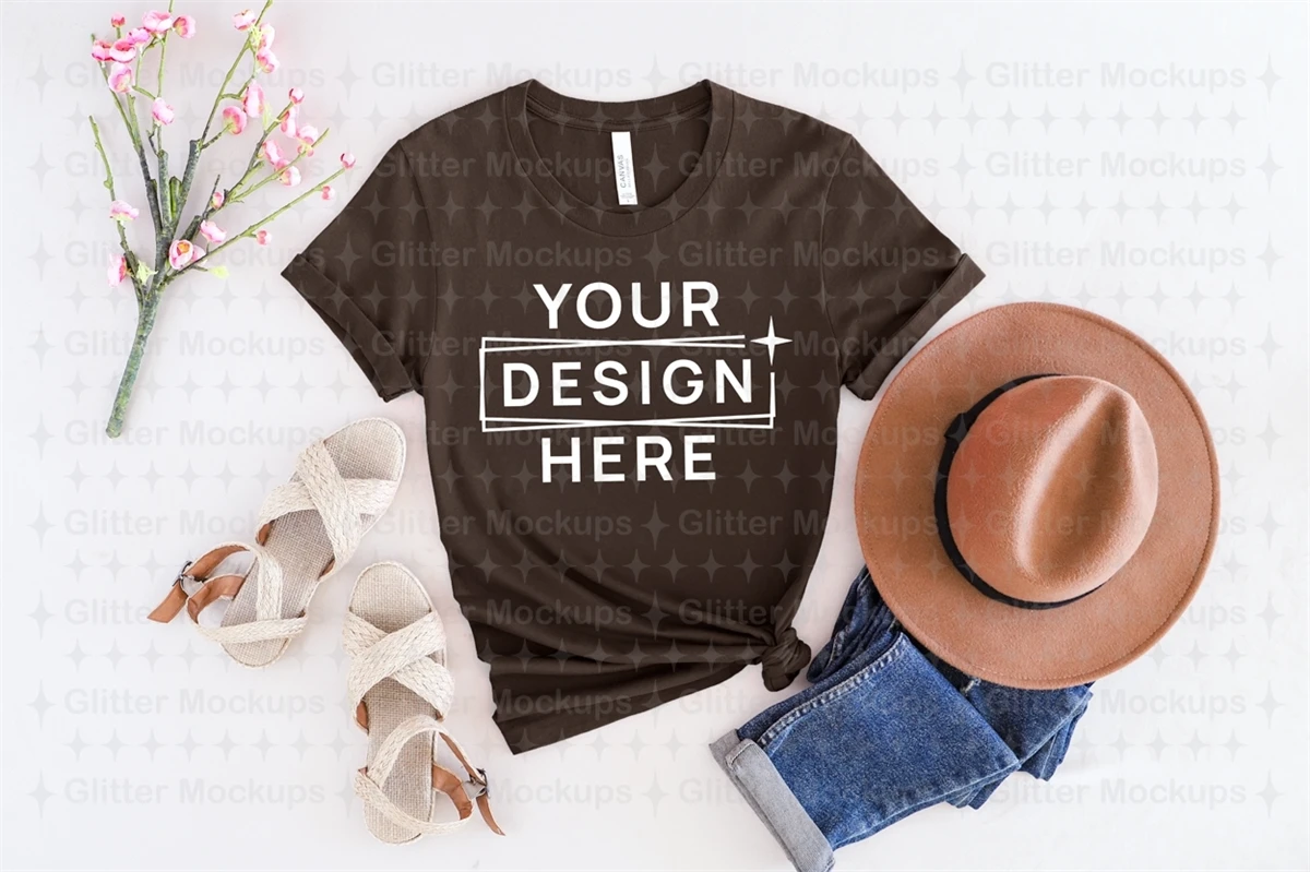 Bella Canvas 3001 Brown Mockup, Boho T-Shirt, Plain, Png