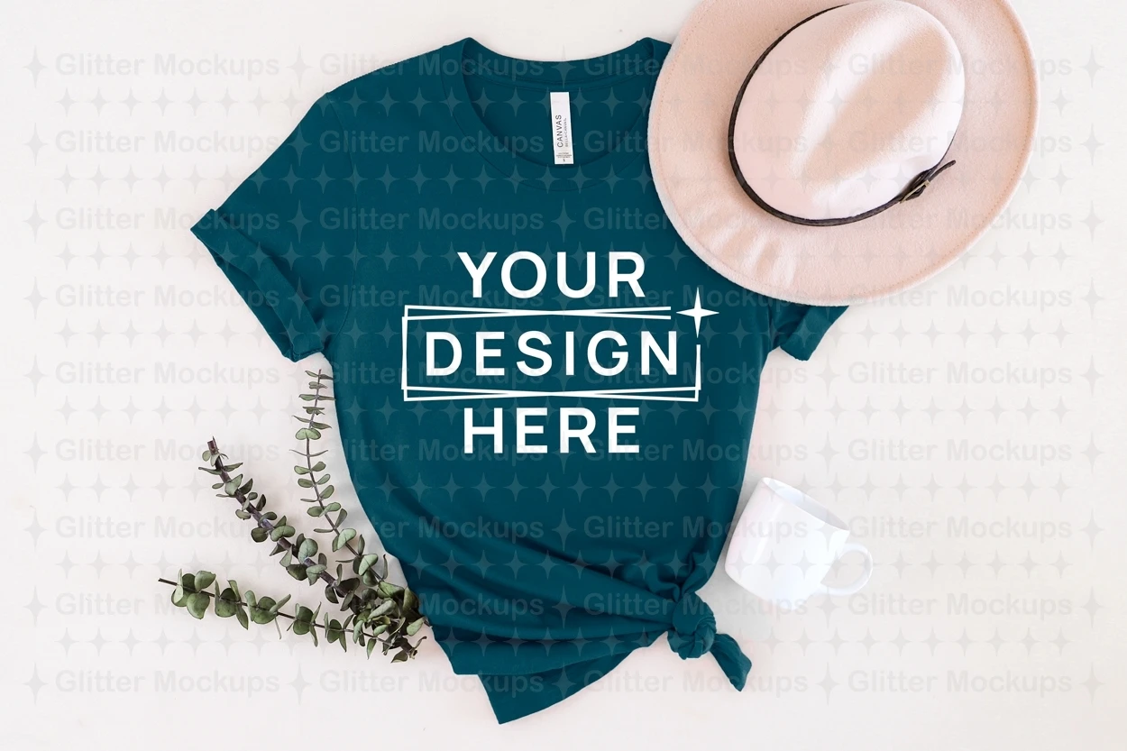 Bella Canvas 3001 Deep Teal Mockup, Unisex Tee Mockup, Png