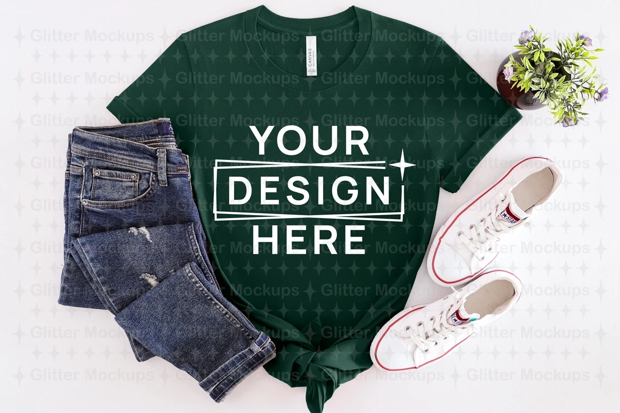 Bella Canvas 3001 Forest Mockup, Unisex T-Shirt Mockup, Png