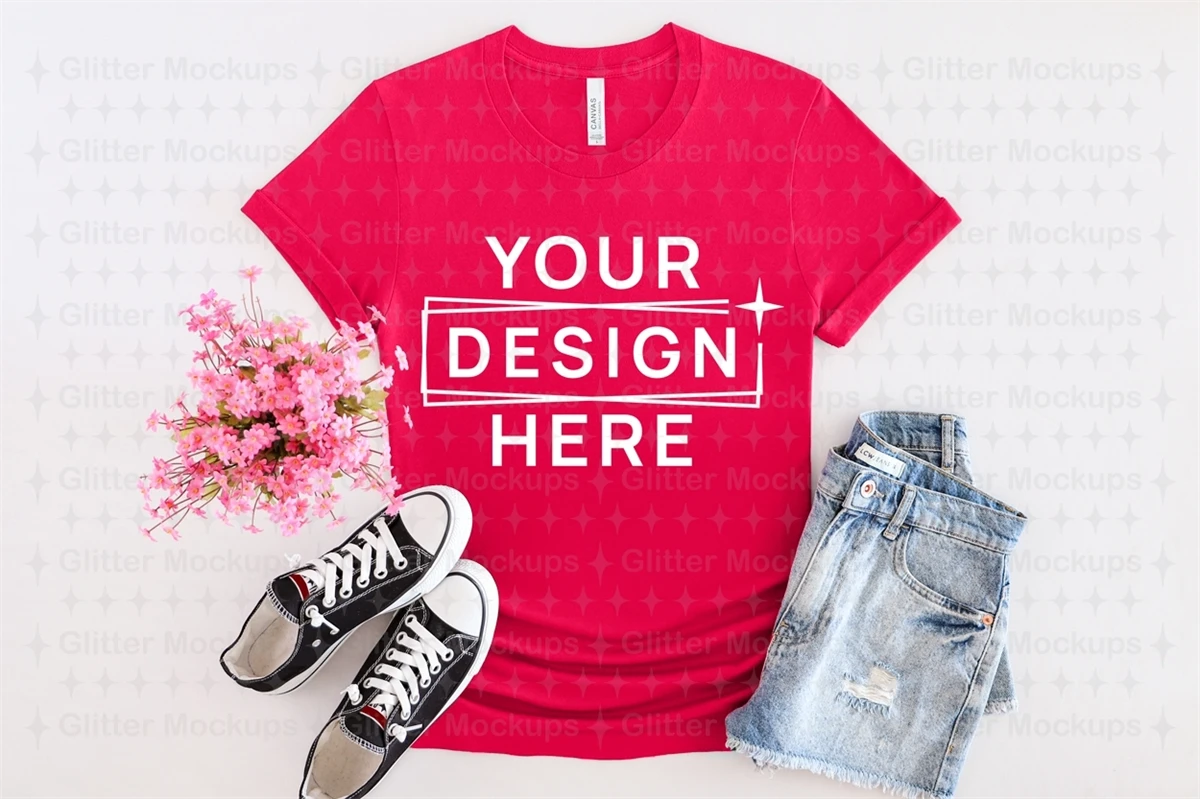 Bella Canvas 3001 Fuchsia Mockup, Unisex T-Shirt Mockup