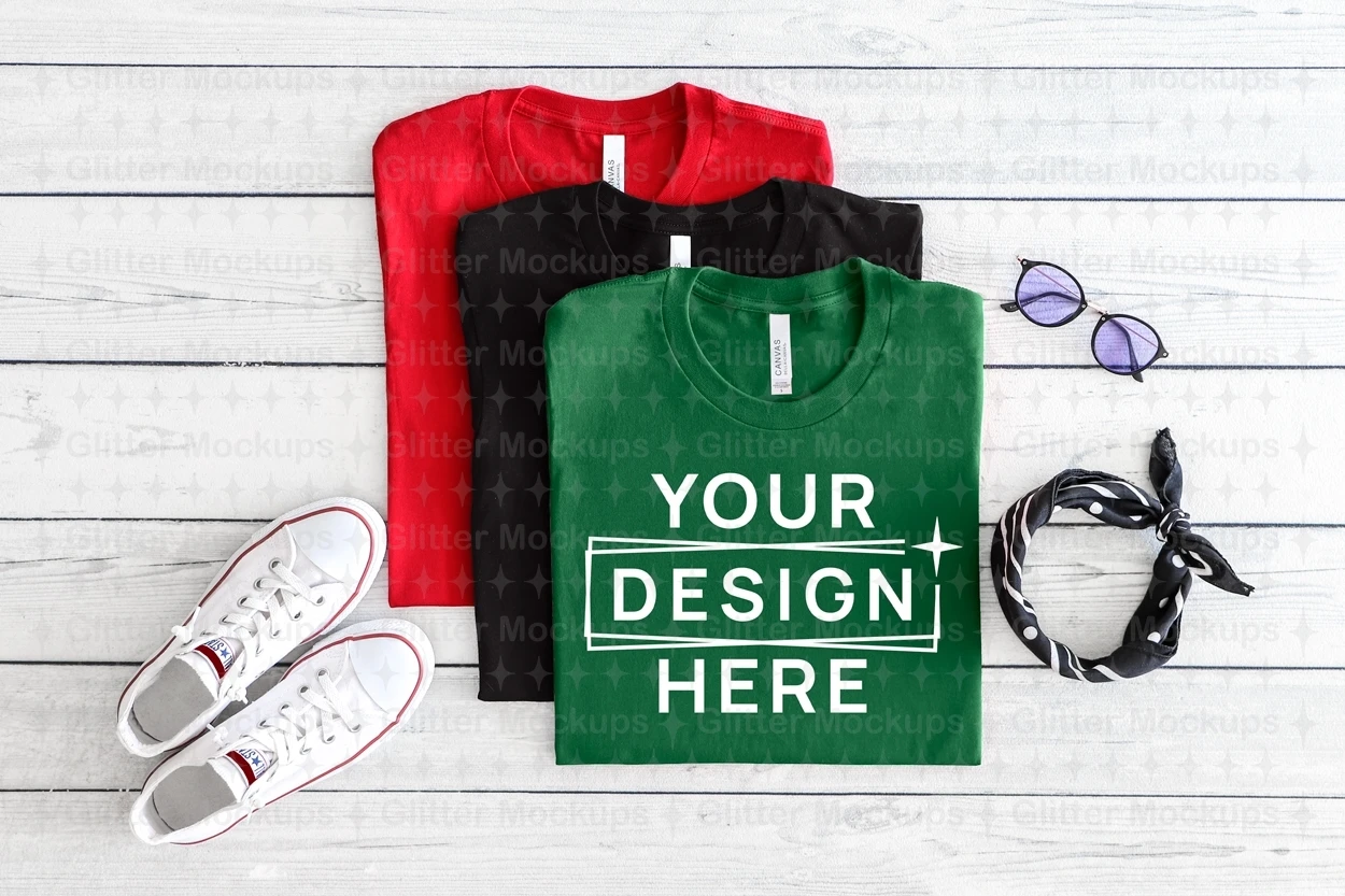 Bella Canvas 3001 Kelly Mockup, Digital Mockup, Flat Lay