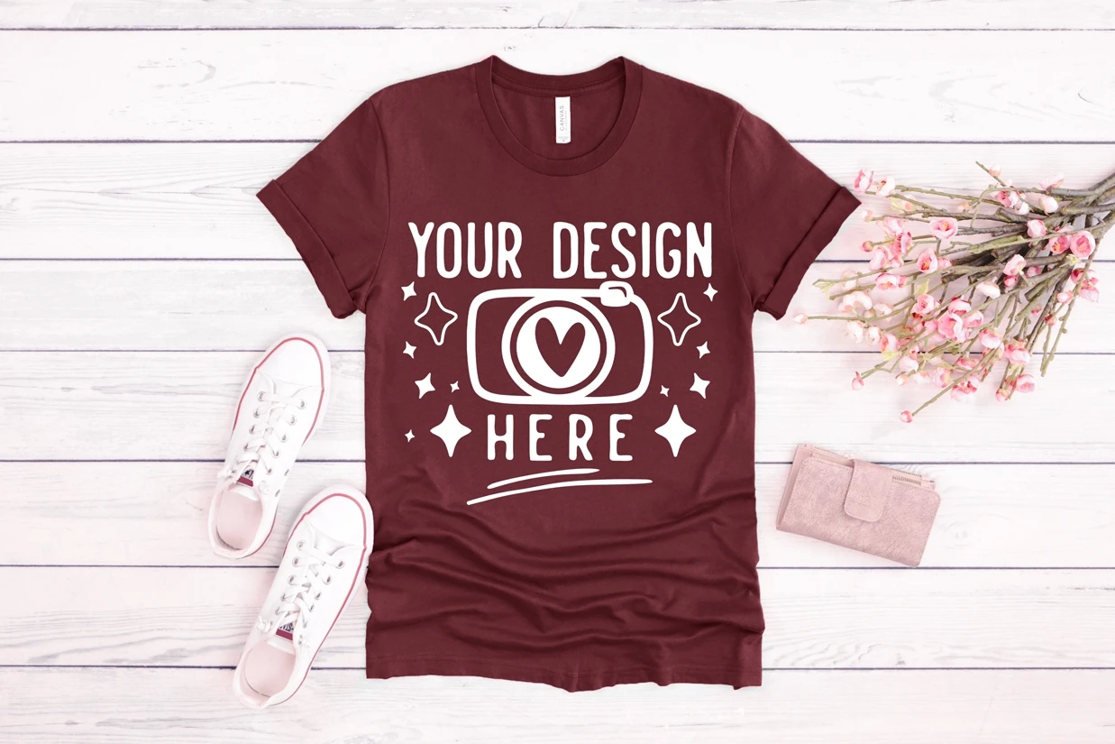 Bella Canvas 3001 Maroon Mockup, Bella Canvas 3001, T-Shirt