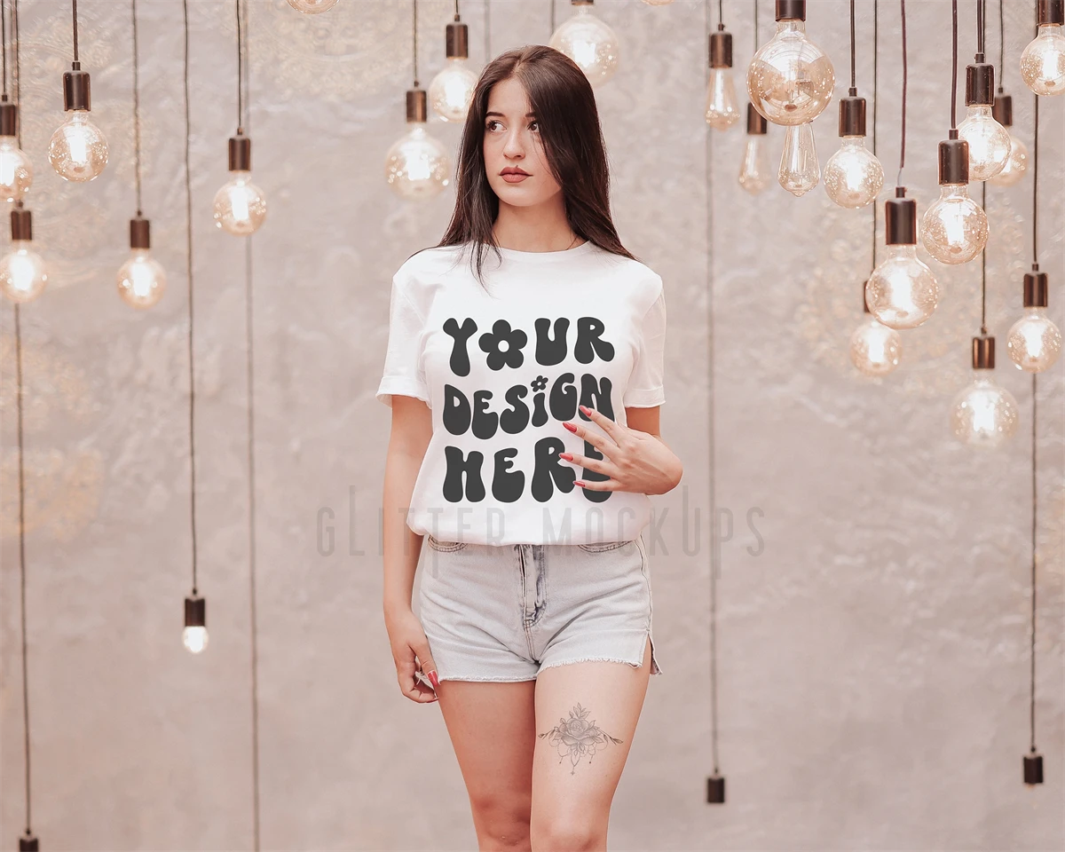 Bella Canvas 3001 Model Mockup, White Shirt Mock Up