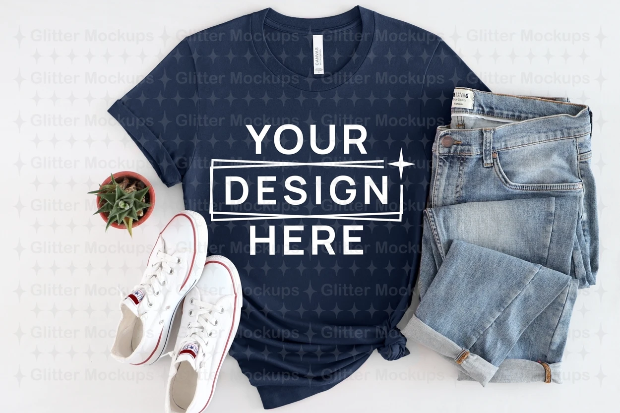 Bella Canvas 3001 Navy Mockup, Unisex T-Shirt, Flat Lay, Png