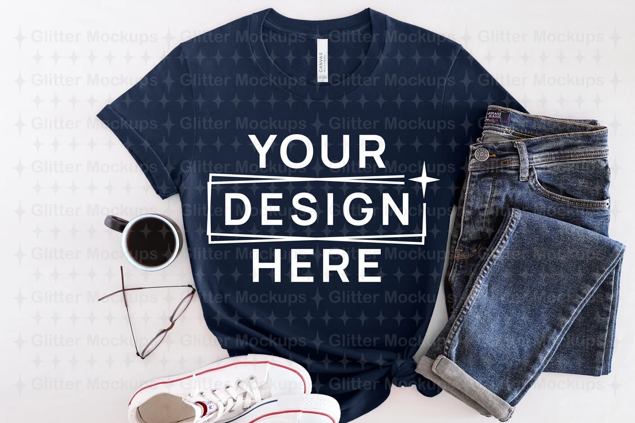 Bella Canvas 3001 Navy Mockup, Unisex T-Shirt, Flat Lay, Png