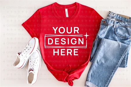 Bella Canvas 3001 Red Mockup, Unisex T-Shirt, Softsyle, Png