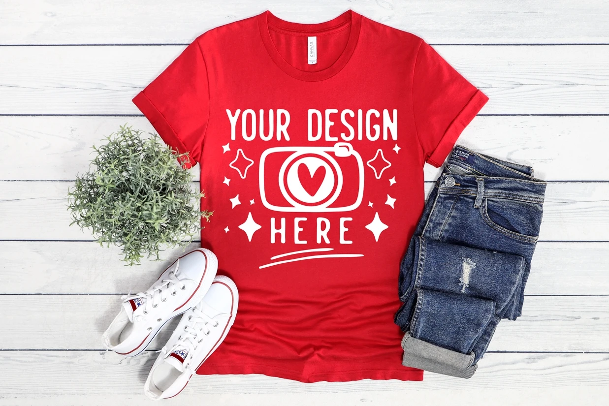 Bella Canvas 3001 Red Mockup,Bella Canvas 3001,Styled Mockup