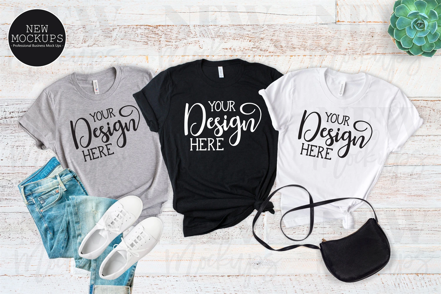 Bella Canvas 3001 White, Heather Black, Athletic Gray T-Shirt Mockup
